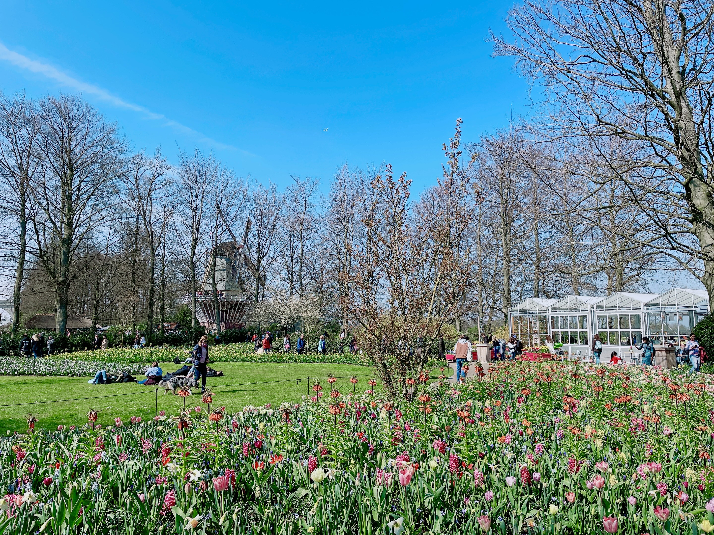 經過漫長陰冷的冬天,荷蘭人真的是看到太陽就需要衝出去補充久違的陽光!Keukenhof花園裡有很多草地都能席地而坐,很適合找個美麗的角落休息、野餐、耍廢。