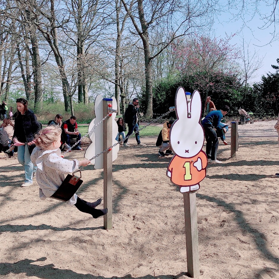 草地野餐區附近,有個小小的「米飛遊樂場」。可愛的米飛造型搖搖椅、溜滑梯、盪鞦韆還有沙坑,超適合遛小孩。