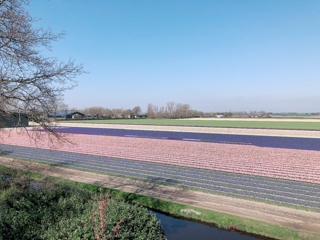 低地國荷蘭最著名的指標建築——風車,是Keukenhof花園人潮最洶湧的景點。小橋、流水、粉紫交錯的風信子花海,確實美的跟明信片一樣。
