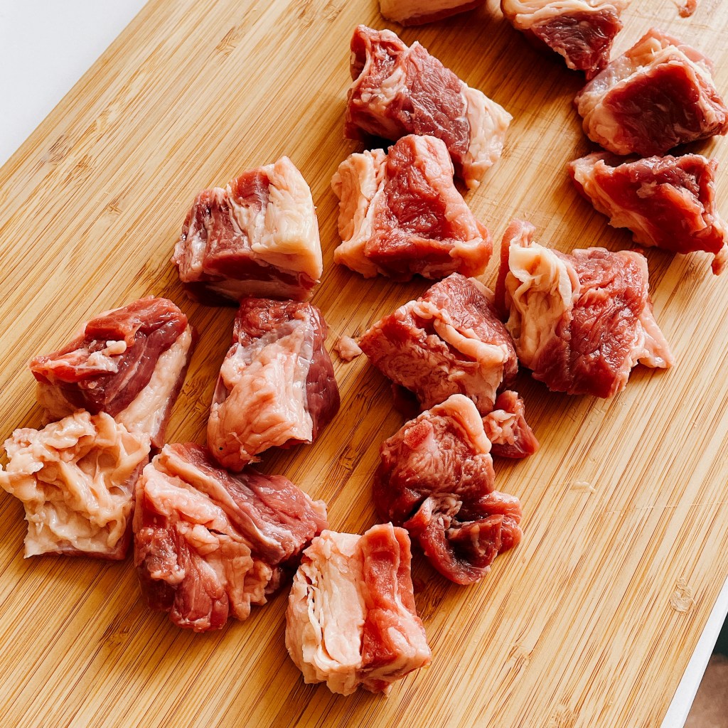 牛腩(500g)厚切成約2cm x 2cm厚度塊狀(如下圖),