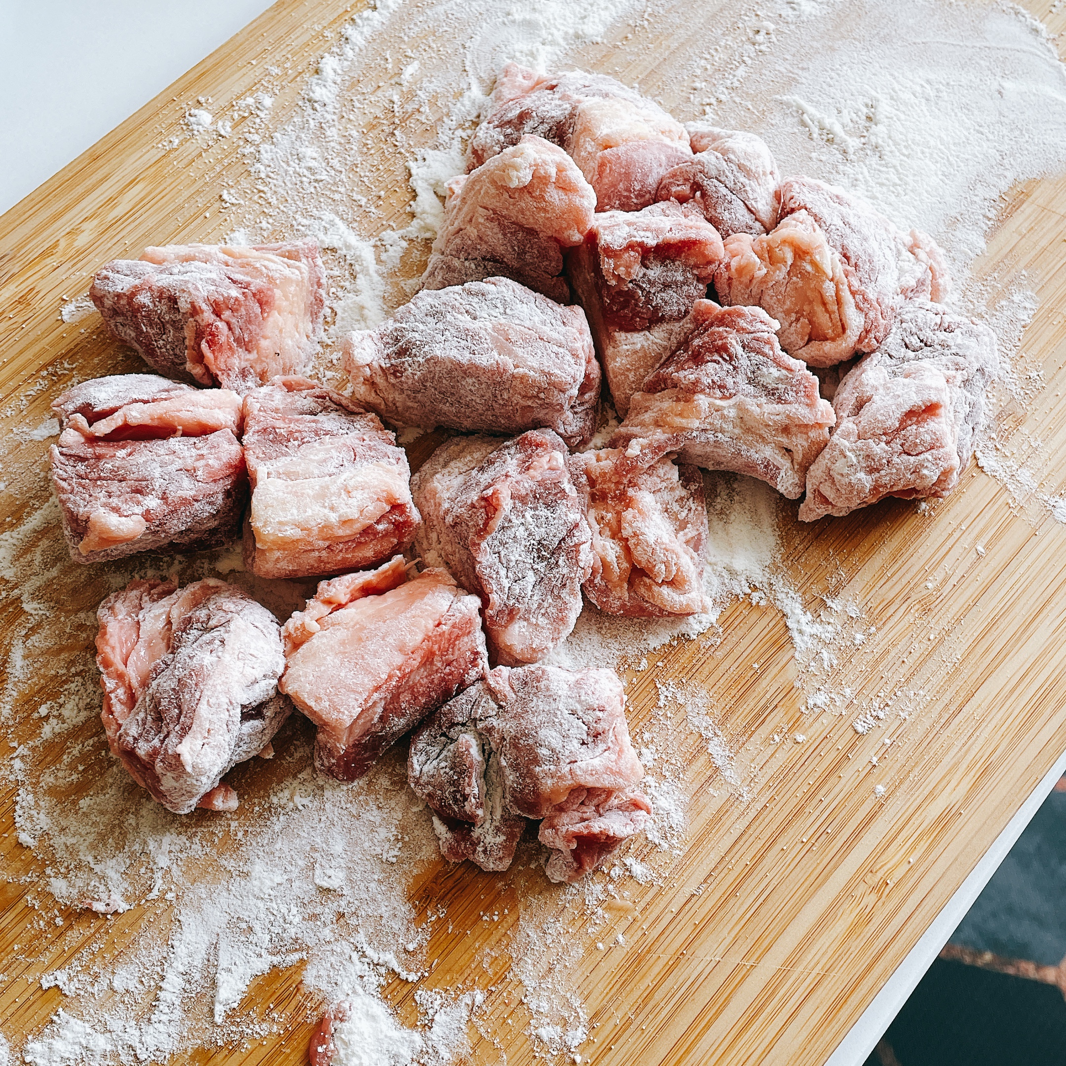 牛肉可選擇油脂豐厚的牛腩或較有嚼勁的牛腱/牛腿肉都是很適合拿來做紅酒燉牛肉的部位。