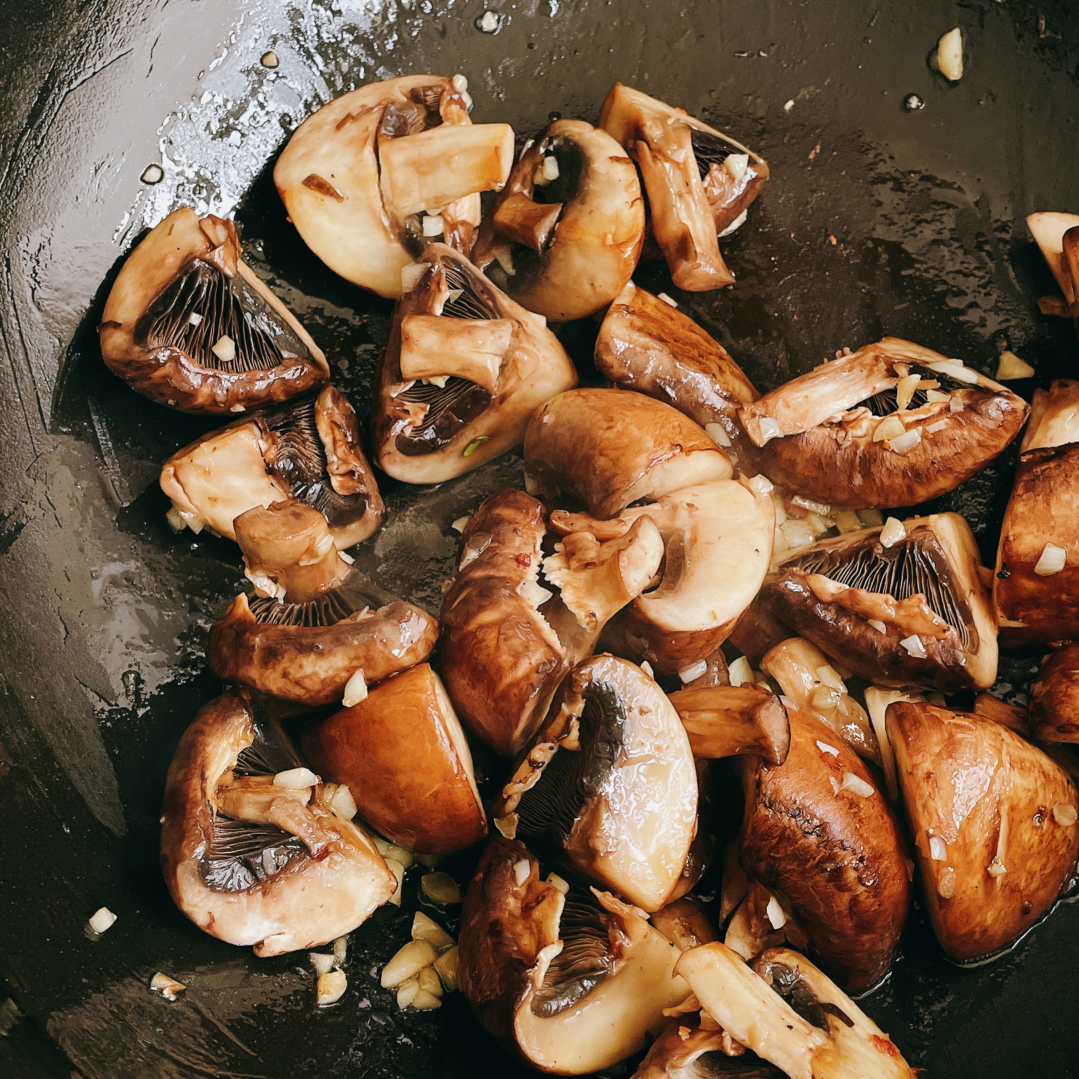 一般蘑菇可整顆煎炒;若使用較大的蘑菇可像我一樣切成1/4再拌炒奶油。