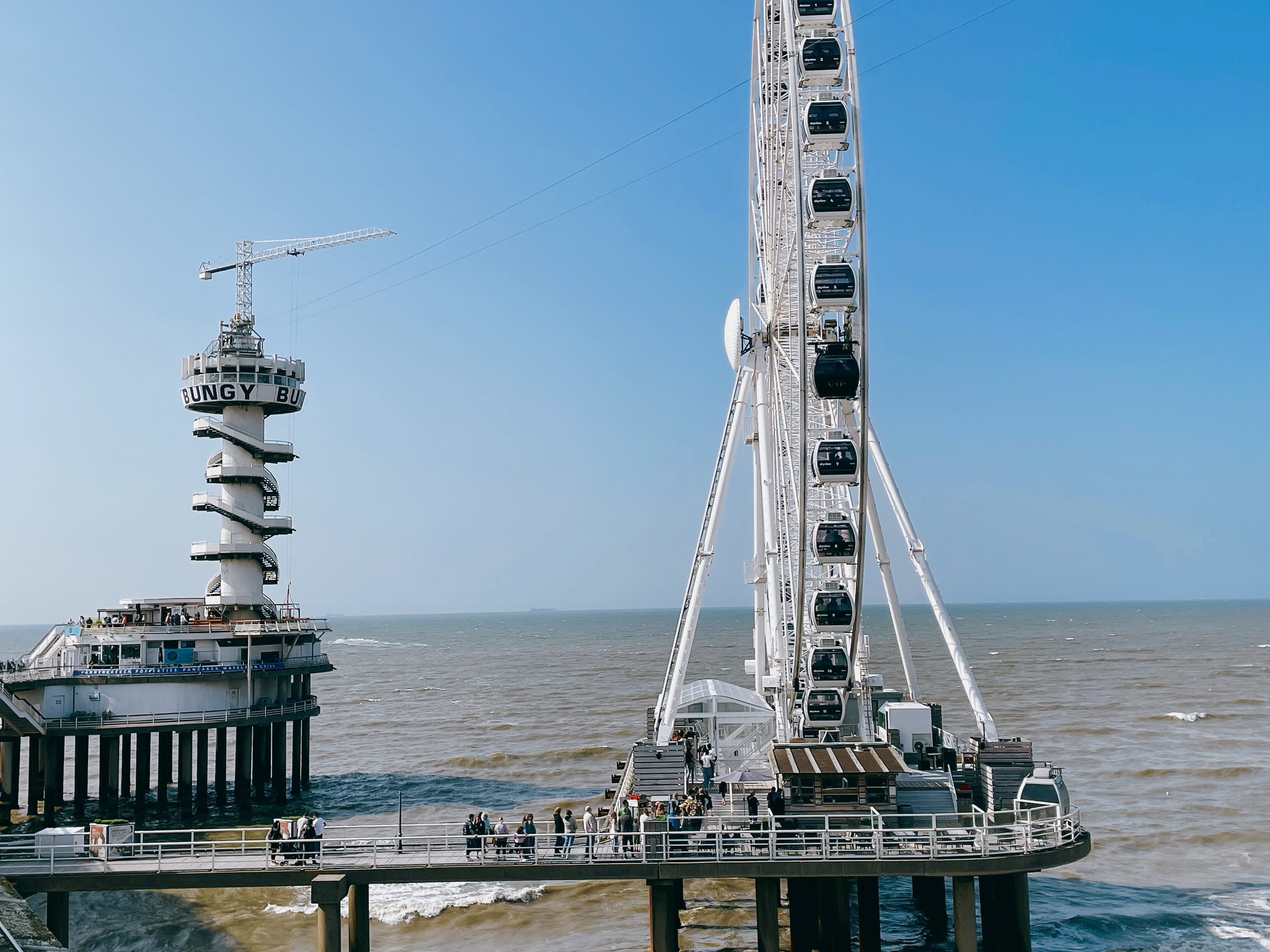 碼頭瞭望台(DE PIER)的另一側則有刺激的高空溜索(zip ride,€40/人)、高空彈跳(bungy jump,€100/人)和飽覽海邊風光的超大摩天輪(大人€9、12歲以下小孩€7)。