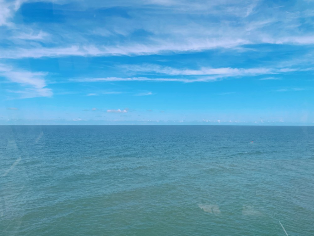 夢幻摩天輪基本搭乘(不含飲料)一次會轉5圈,大概10~12分鐘,裡面有冷氣空調非常舒服;但在高空中暫停等其他乘客上來的時候,海風一吹搖搖晃晃真的蠻刺激的。