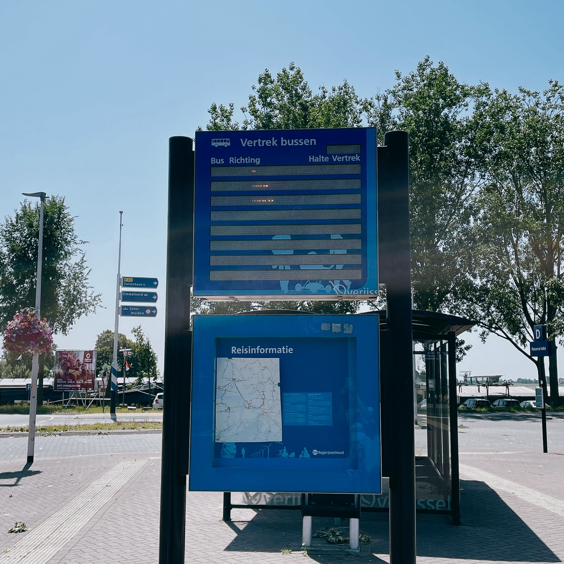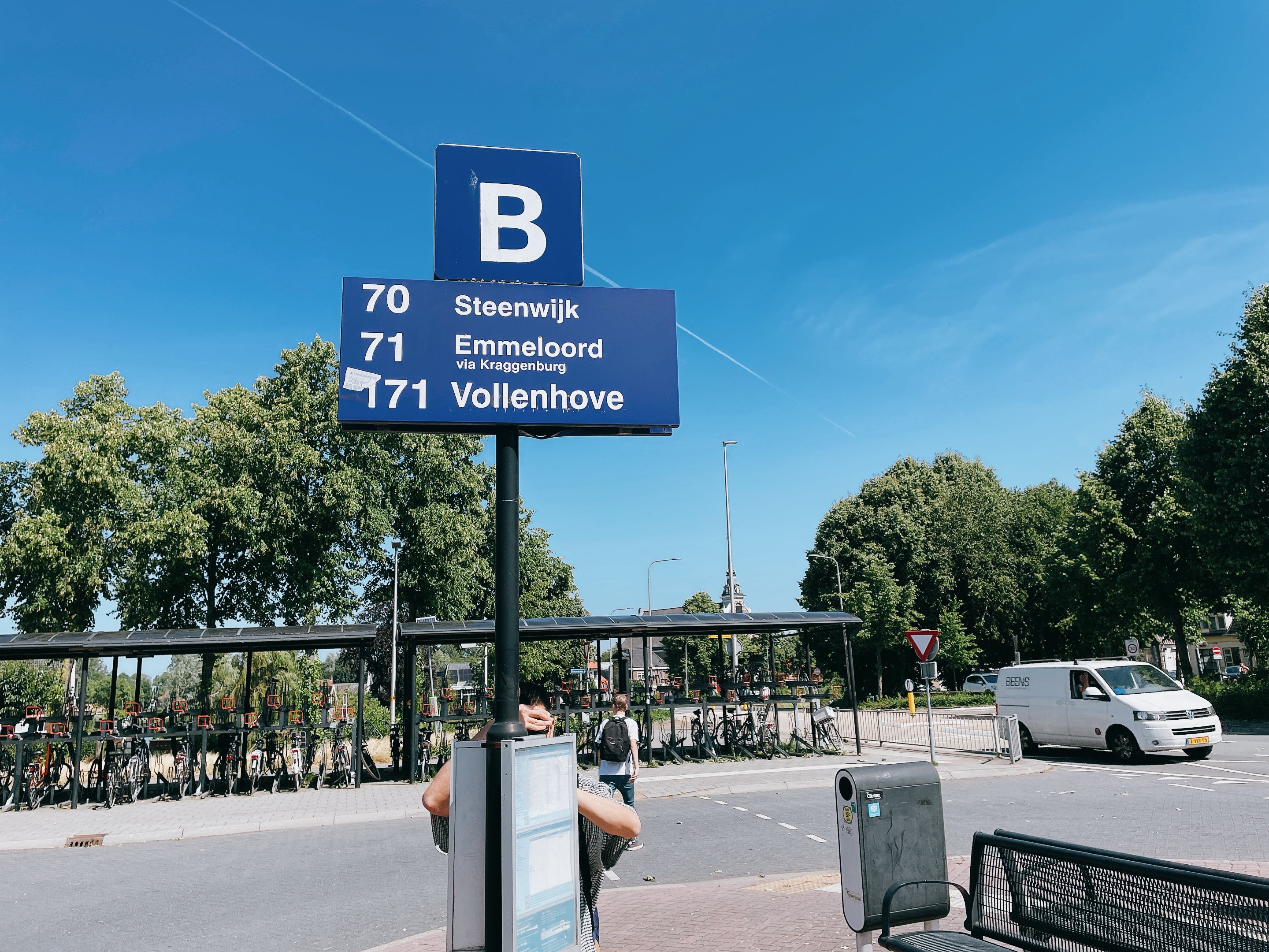 因為,即使是同一路公車,也有可能有不同路線規劃。以70號公車(Zwartsluis – Giethoorn)為例,在Zwartsluis轉車時,記得要先在電子佈告欄(見左圖)確認前往羊角村Giethoorn的候車點為B,往Steenwijk方向的70號公車(如右圖),不然可能會被載到奇怪的地方。