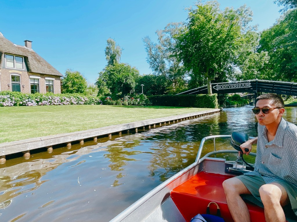 考量夏天是歐洲人「猛獸出閘」的觀光旺季,我和半獸人先生刻意避開週末人潮,選擇週間前往羊角村,享受水鄉澤國的風雅;畢竟,假日羊角村渠道上真是『船』滿為患、喧喧鬧鬧,實在焚琴煮鶴太掃興。