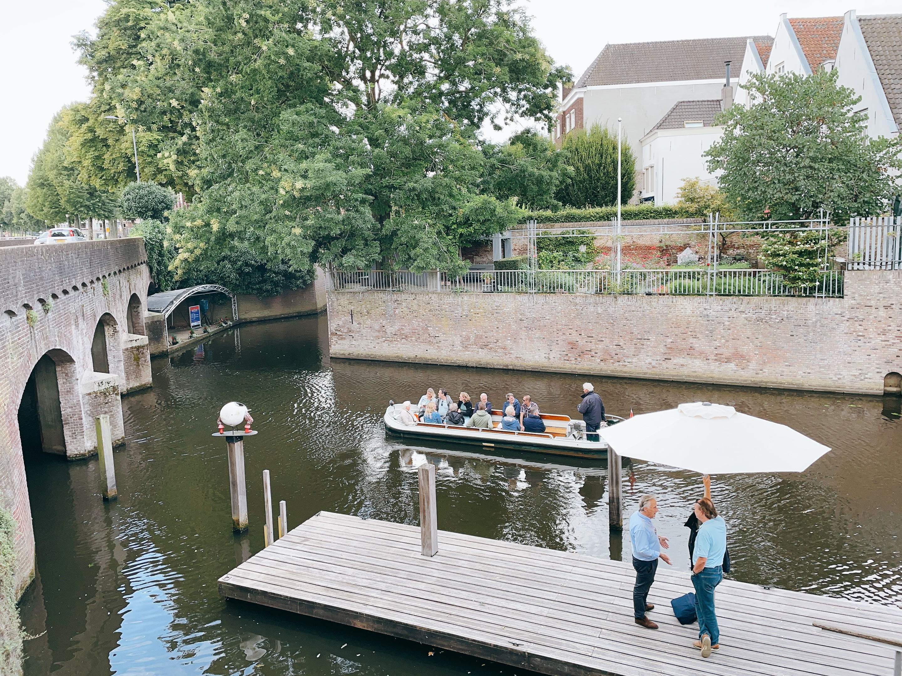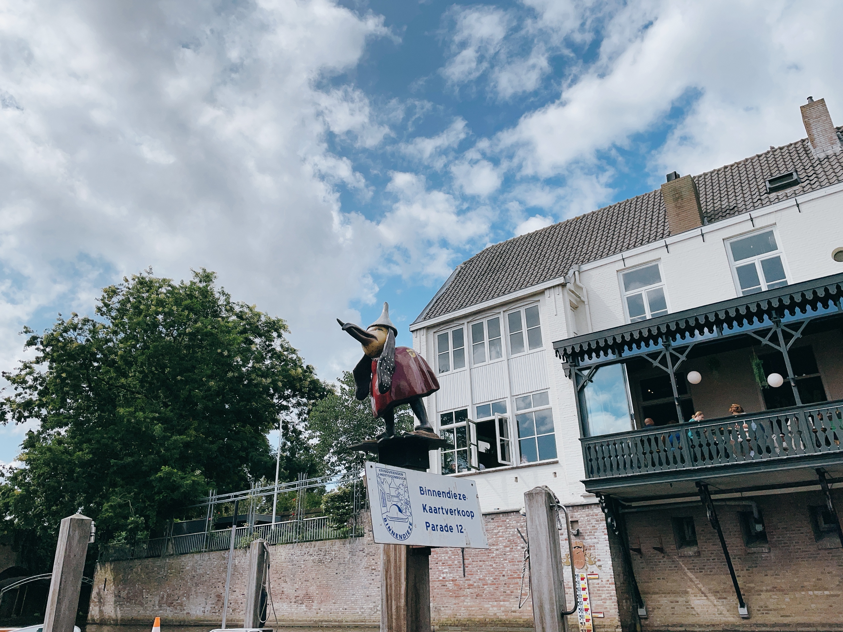Den Bosch遊船其實是當地熱門觀光景點。春天開季營運至秋天,除了週一公休,其餘每天10:30、12:00、13:30、15:00都能預約搭Jeroen Bosch Boat Tour電動遊船。導覽只有荷蘭文,假日如果沒有事先線上買票,幾乎每個時段都是滿員,不能小看觀光旺季的荷蘭景點啊!