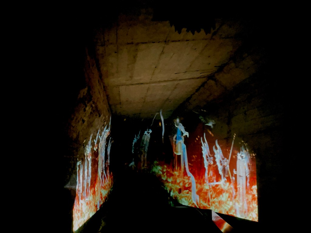 進入最漆黑的地下運河區,來到本次遊船的高潮——沈浸式體驗波希「地獄之火」與「天使報喜」