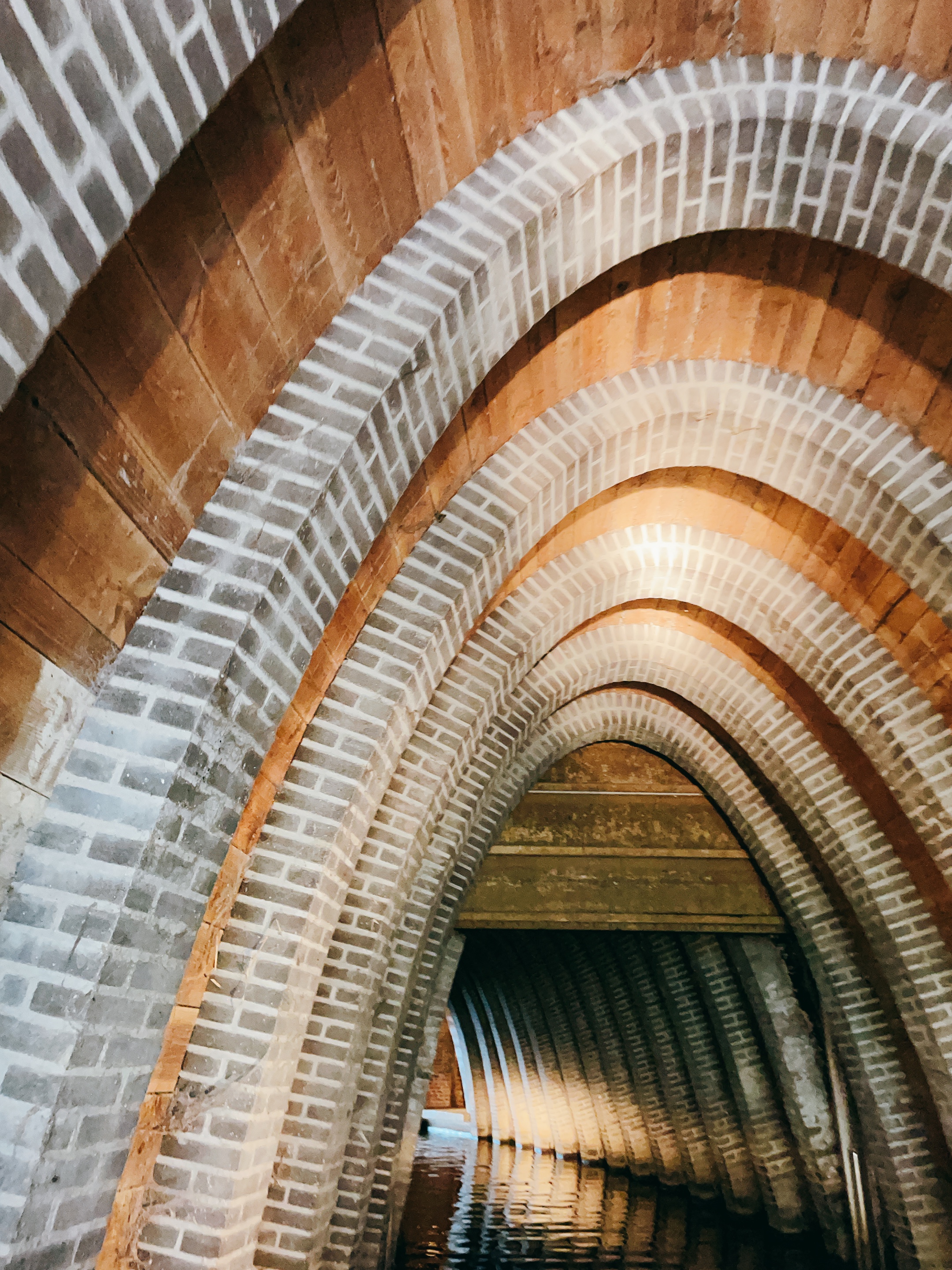 一開始行經老城區地下,教堂/市政廳/挨家挨戶的地基、水管、地下室一覽無遺,磚牆上還有很多封死的排水孔,不難想像過去的Den Bosch渠道應該充滿廢水、臭味和老鼠,根本是黑死病溫床。