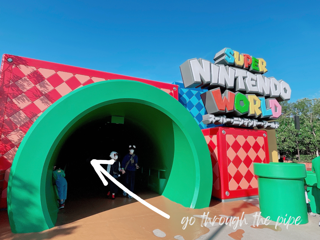 就會看到巨大綠水管;水管的另一側,就是超級任天堂世界(SUPER NINTENDO WORLD)