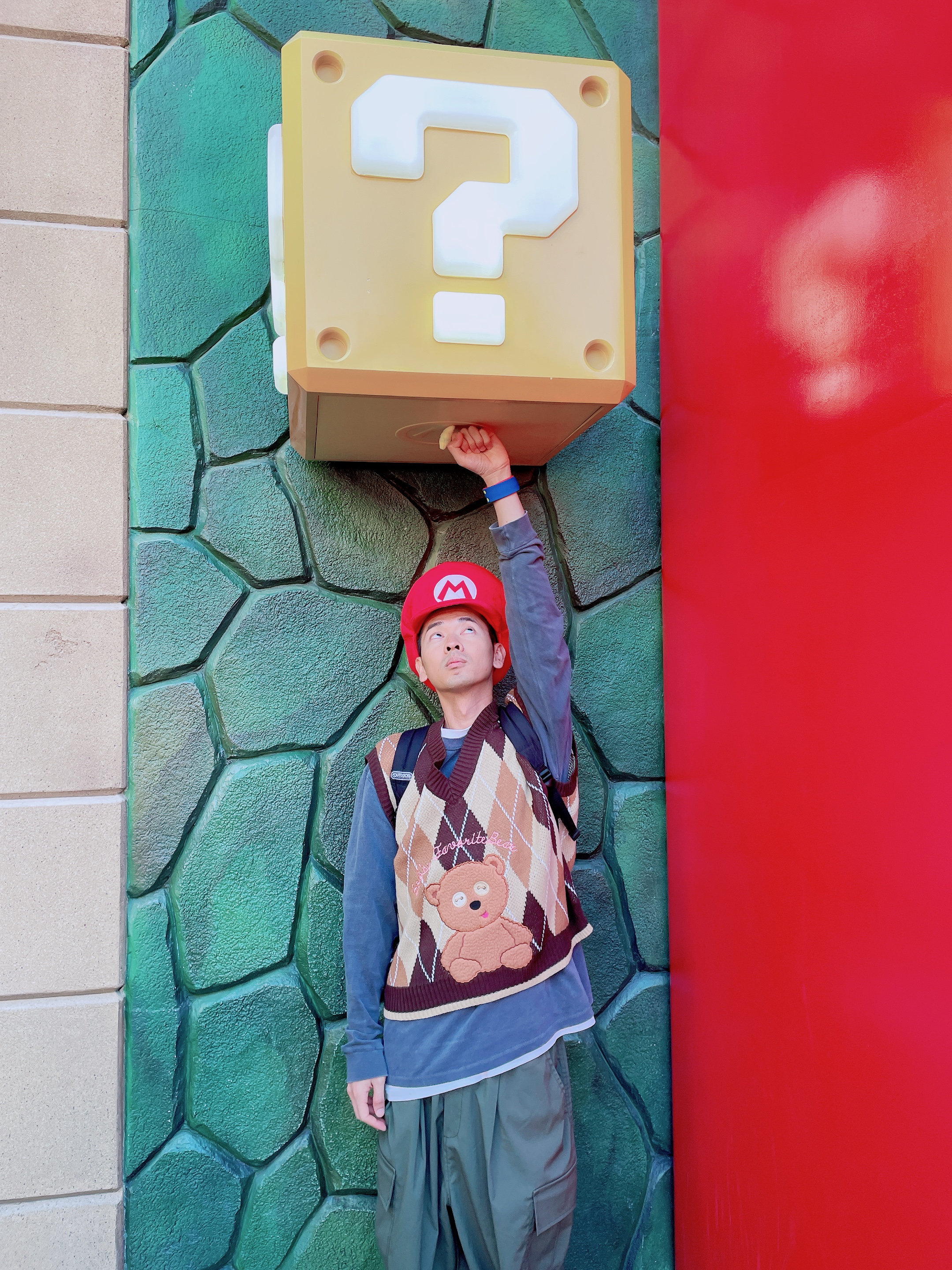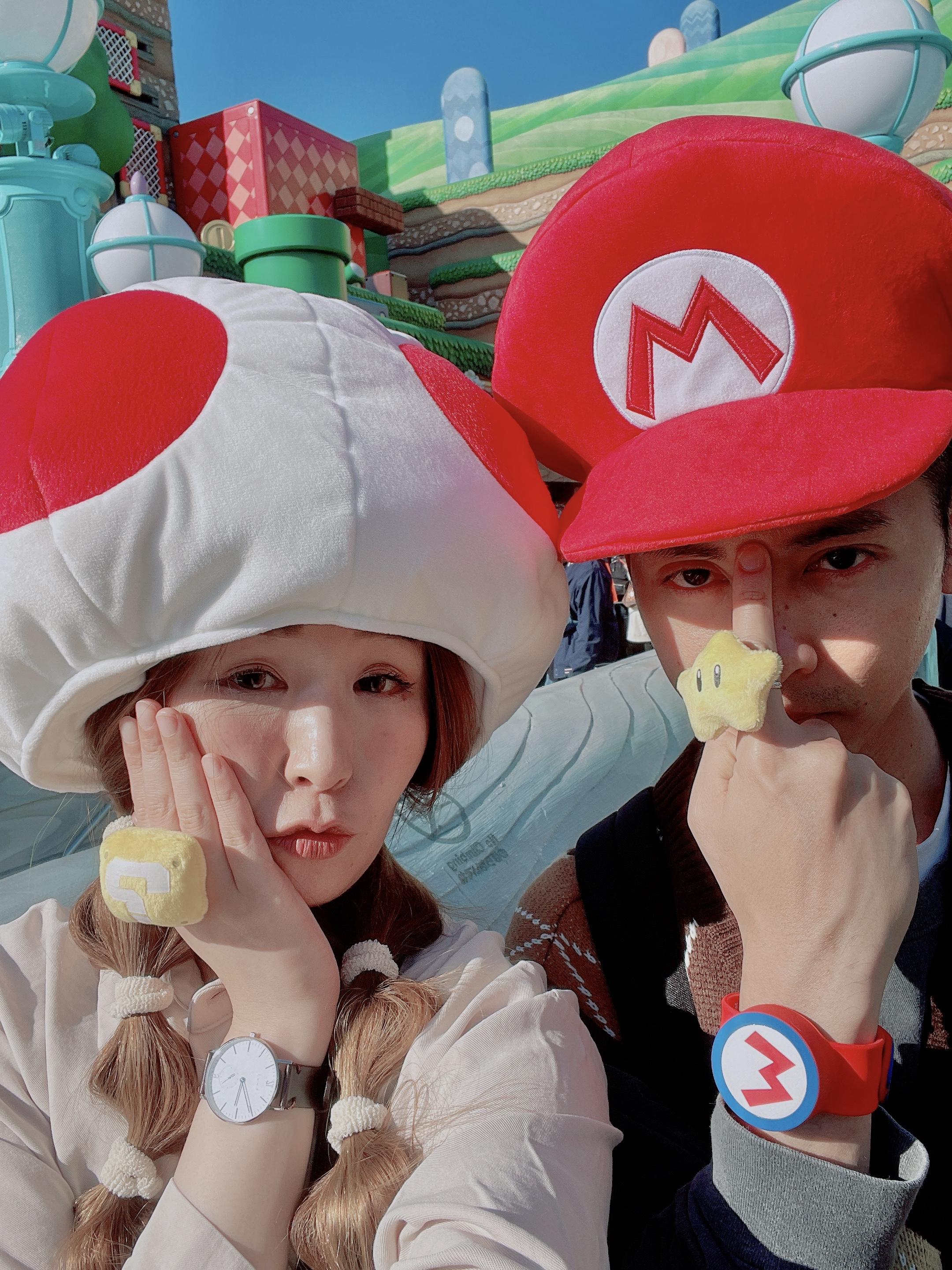 這次我們既然火力全開主攻「超級任天堂世界」,我和半獸人先生cosplay的角色理所當然地就是瑪利歐和奇諾比奧啦!