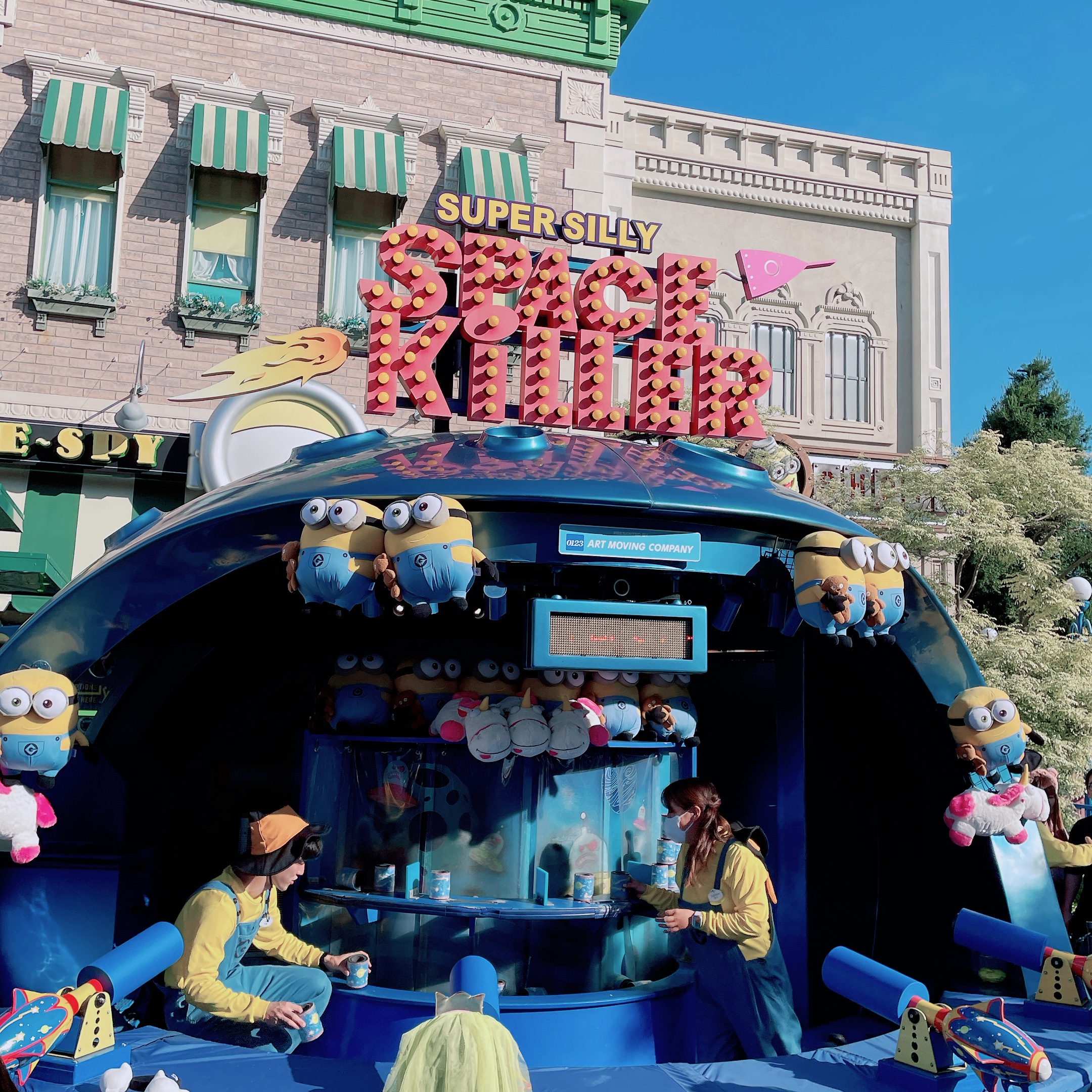 可愛的小小兵公園(MINION PARK)除了拍照,還有一些遊樂場常見的射擊遊戲(須額外付費)可以玩;若想蒐集小小兵造型爆米花桶,則在粉紅糖果店(SWEET SURRENDER)外面的餐車可購買。