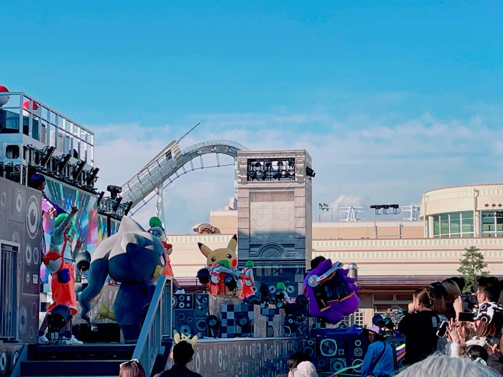自從【大阪環球影城】取消行之多年的夜間花車大遊行,取而代之的是每季推出不同主題遊行活動。我們這次來恰好是期間限定「寶可夢充電!萬聖節迎賓秀」,大家都可以免費參加寶可夢電音派對,由DJ皮卡丘和DJ耿鬼帶動跳勁歌熱舞。