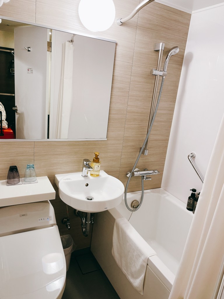 浴室有淋浴/浴缸和令人懷念的免治馬桶,