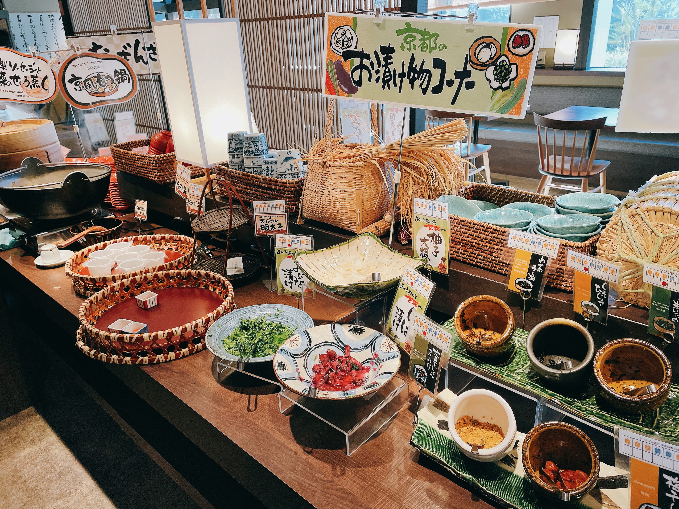 位於飯店1樓「食彩健美野の葡萄」於6:30~9:30供應自助式早餐,一個人¥1,760(含稅)。食材種類非常豐富,網羅最經典、最具代表性的京都口味。
