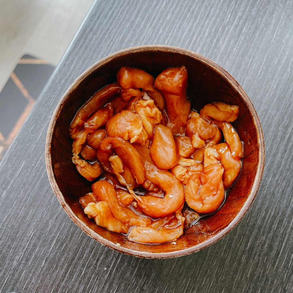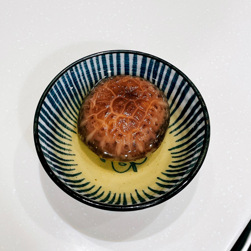 將乾日本花菇(4朵)泡在水(300ml)裡8小時以上,泡軟備用