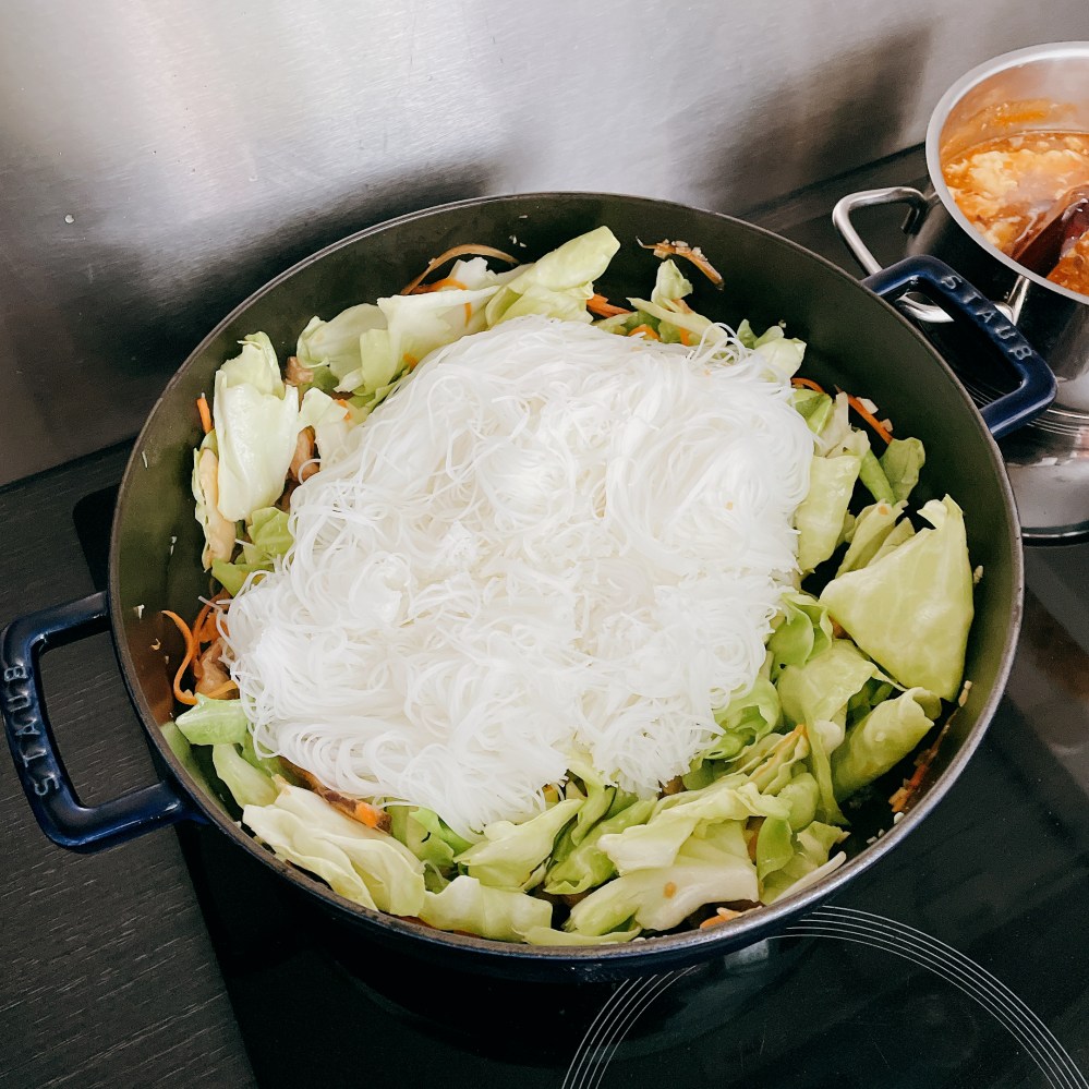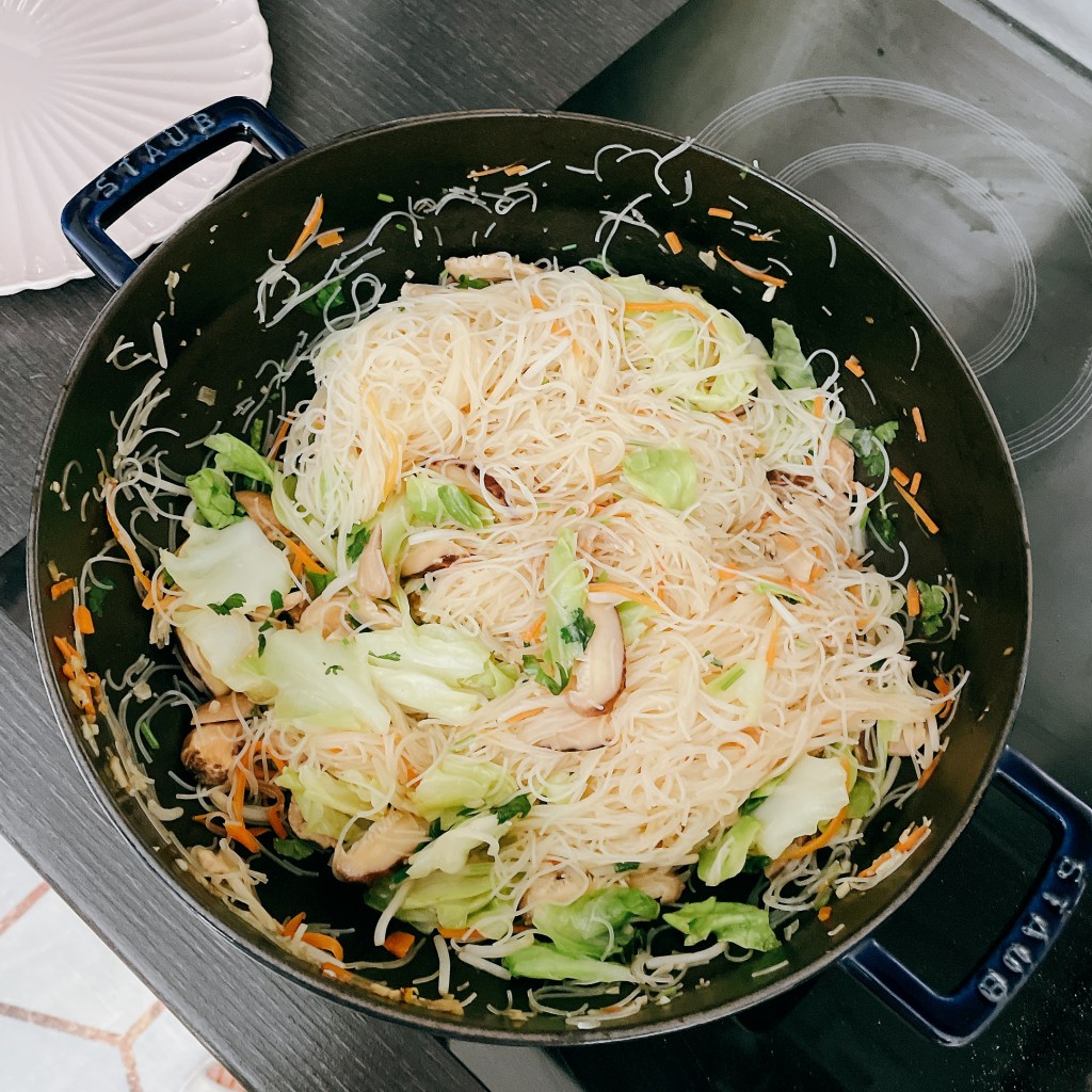 我是用28公分的STAUB鑄鐵鍋當炒鍋,但用一般鍋子也可以把米粉炒的非常好吃,不一定要用鑄鐵鍋
