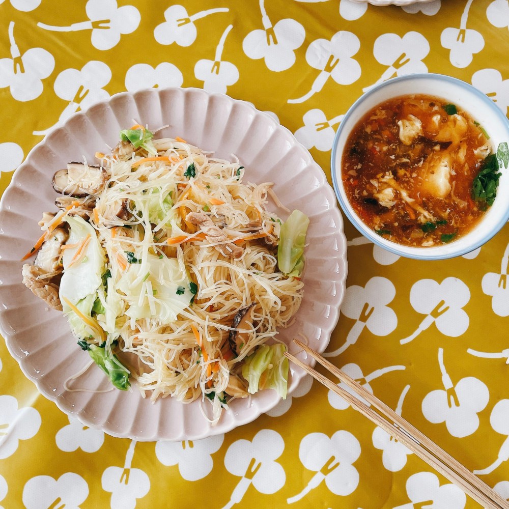 和爸爸一起吃的炒米粉,有QQ的麵腸、柔軟的腐皮和大量蔬菜;整鍋米粉沒有一塊肉但就是好吃到讓人著魔似地停不下筷子。
