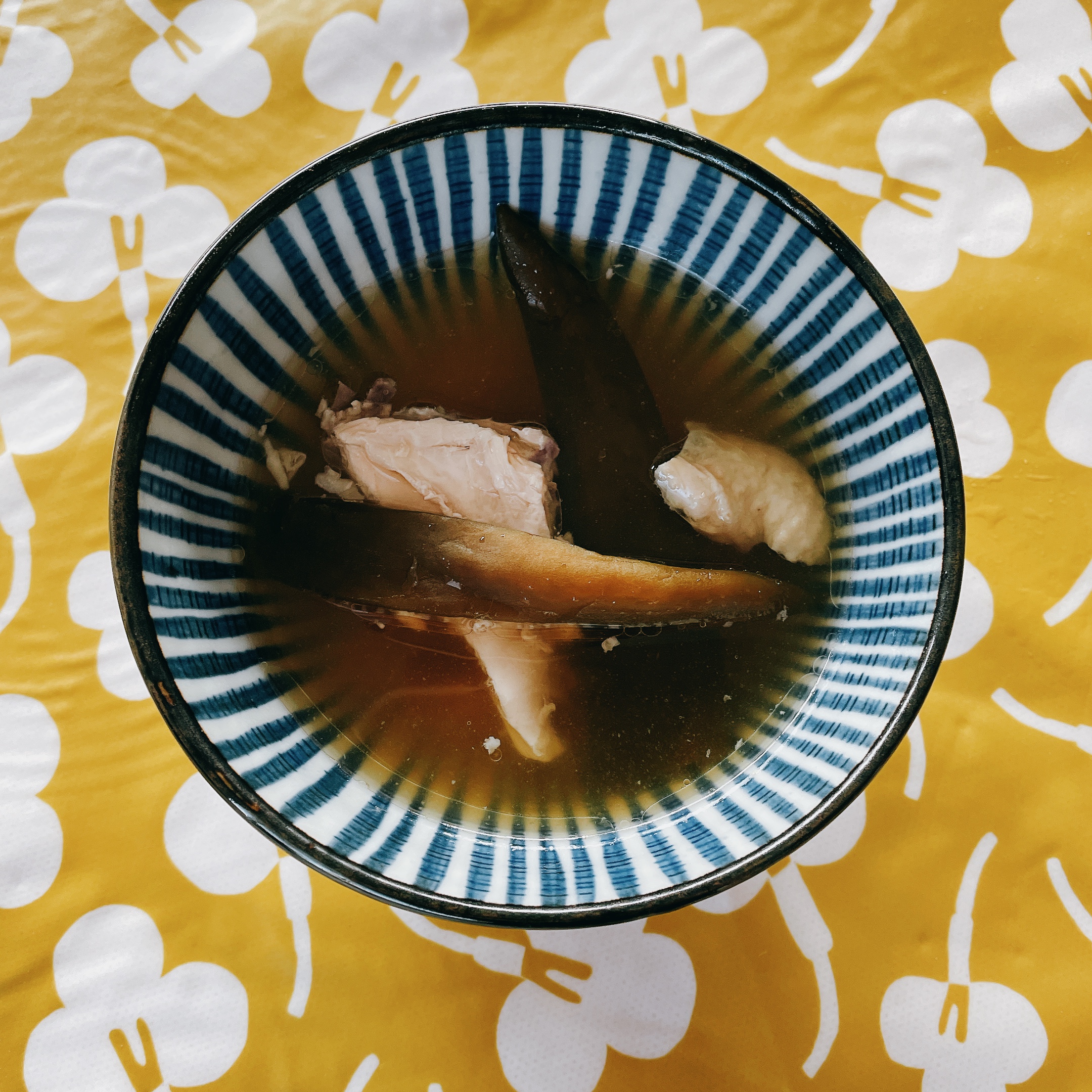 不過,這種手法我喜歡用於處理蒜頭雞湯或麻油雞湯那類適合寒冬滋補療癒的湯品。