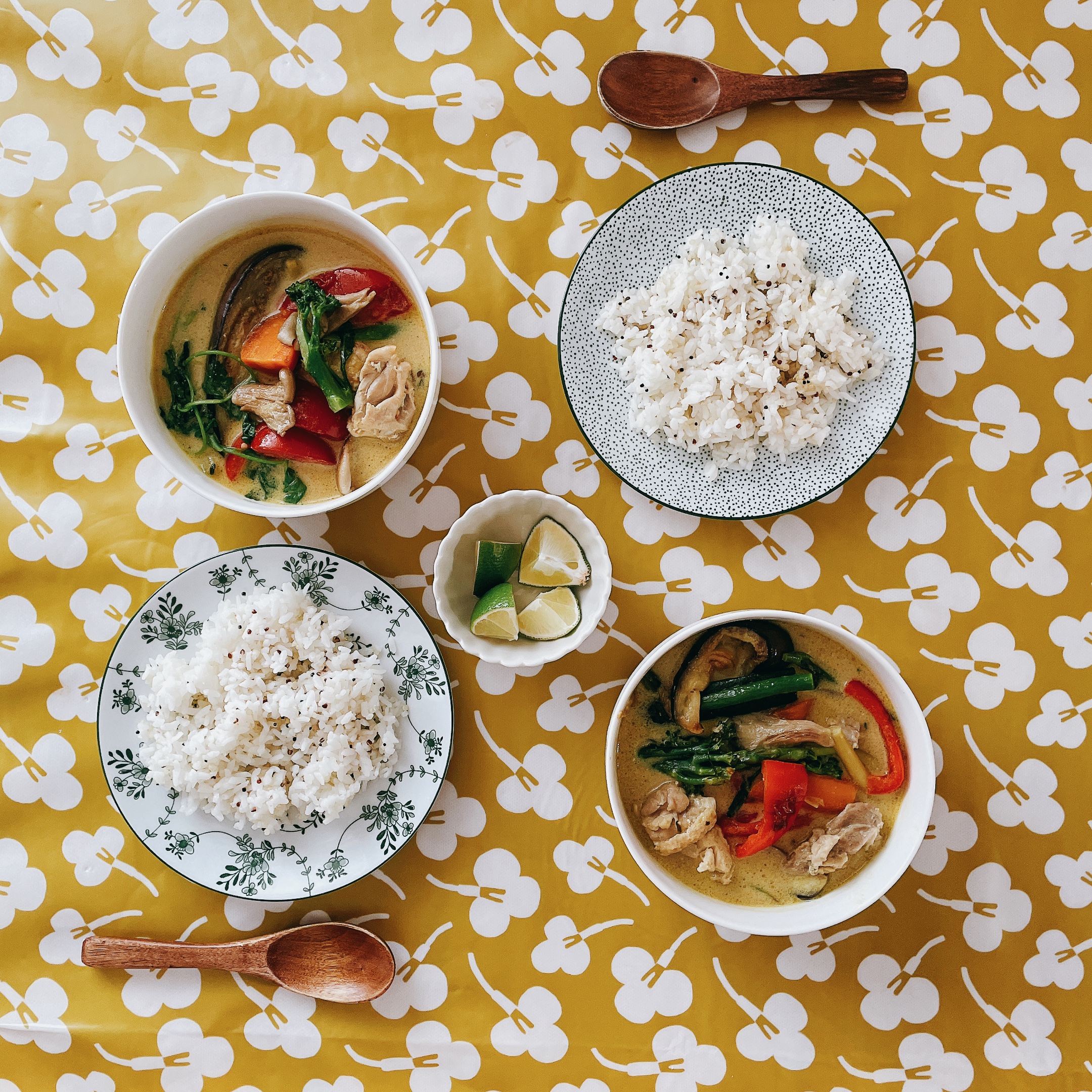 無論藜麥飯或是香檸飯都和【雞肉野菜泰式綠咖哩】非常搭配。