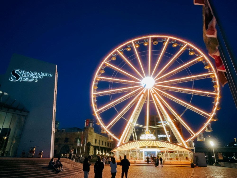 沿著萊茵河畔散步至巧克力博物館,旁邊還有摩天輪,晚上來這邊散步看夜景也非常浪漫喔!
