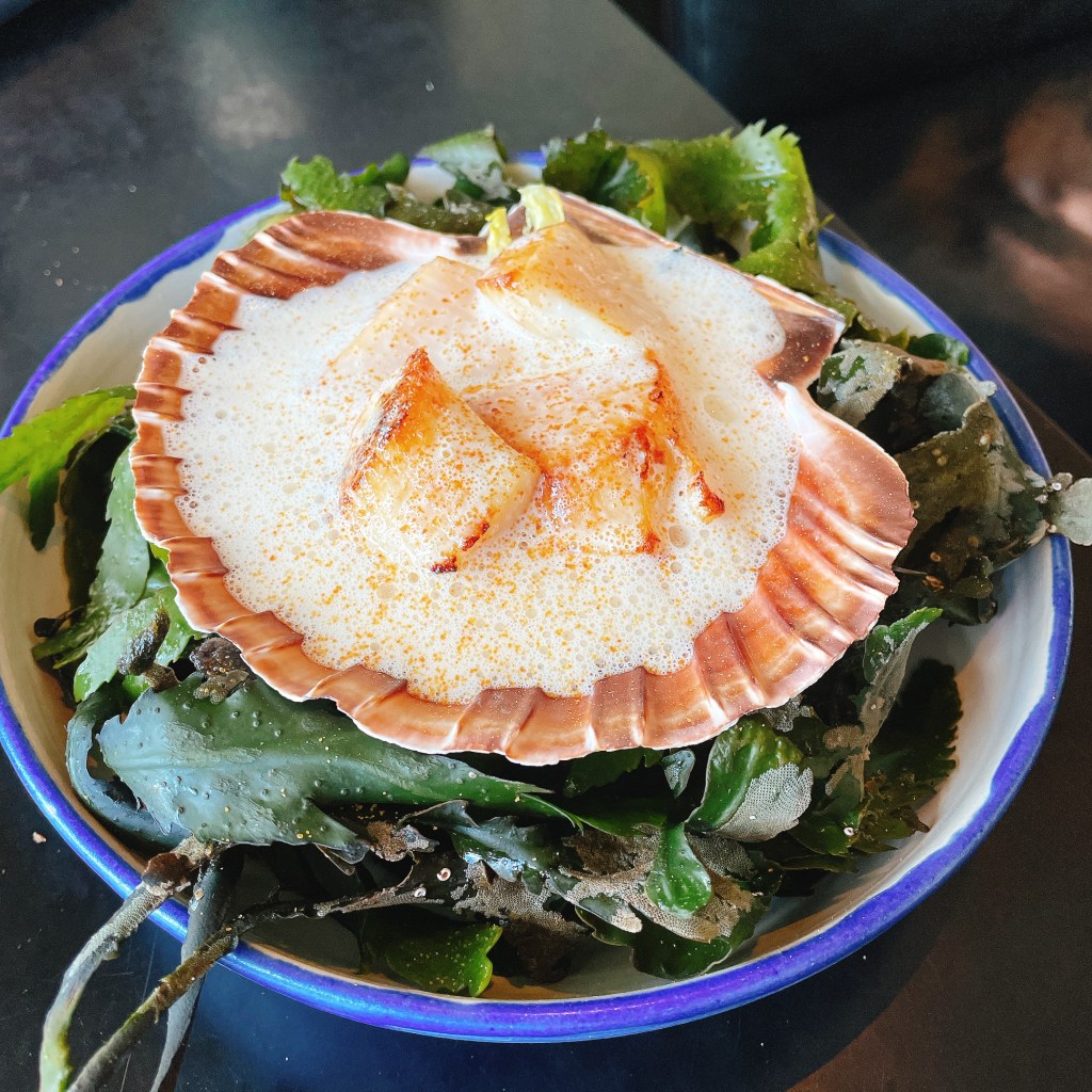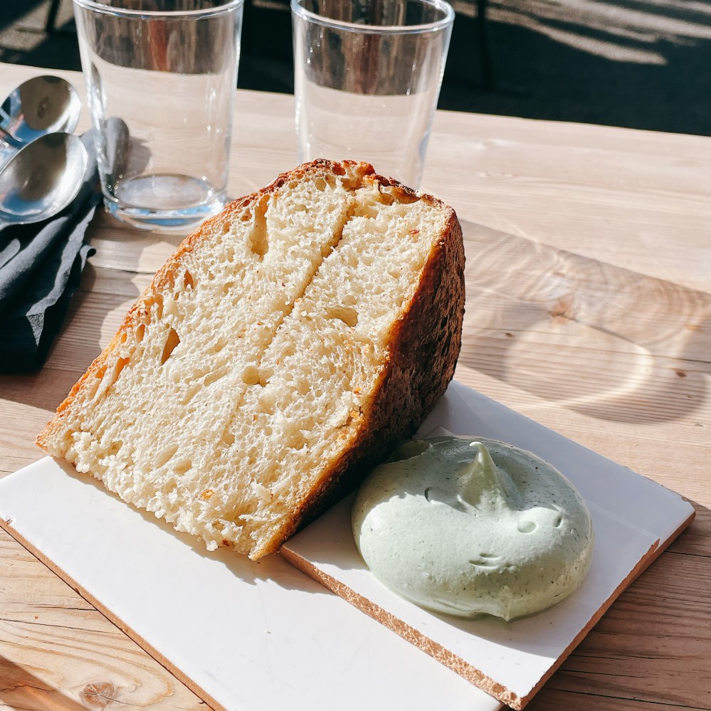 麵包不難吃但也不好吃;奶油質地非常輕盈,加了海藻一起製作所以吃起來有種在海邊的味道。環顧四周,意外蠻唰嘴的。