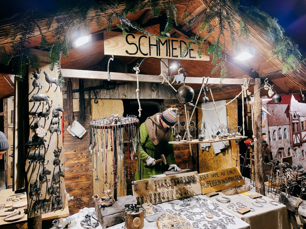 主要是賣戒指/項鍊/鑰匙圈這類的手工金屬飾品,外觀雖然很難讓人燃起購物慾,但看鐵匠站在冷風中敲得那麼辛苦,倒是有點想打賞小費。