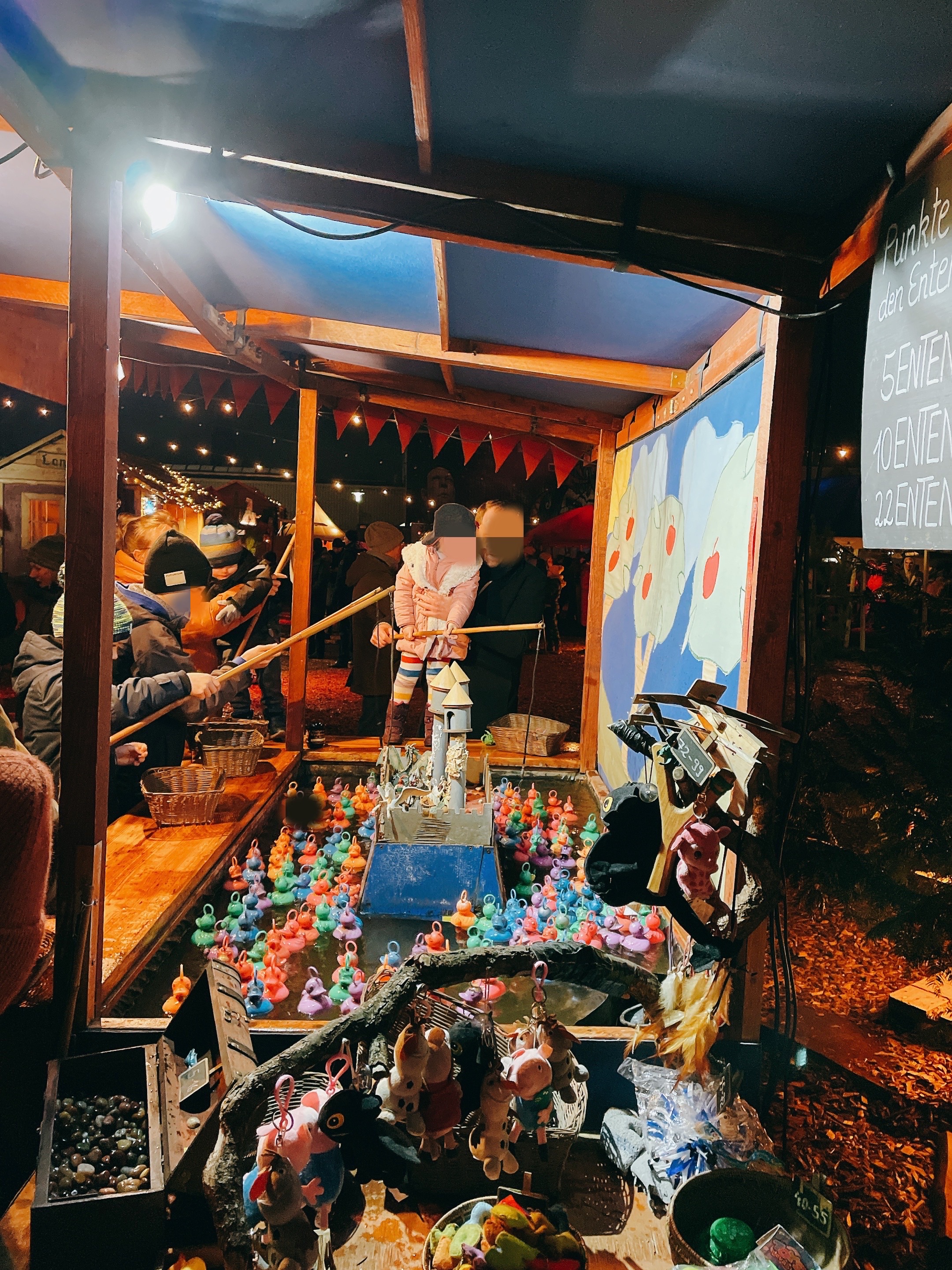 小釣客們絡繹不絕,竹竿、釣線、鐵鉤非常原始;不過攤販提供竟然是塑膠鴨,害我有點失望,原本以為德國人會放更厲害的東西給小朋友釣。