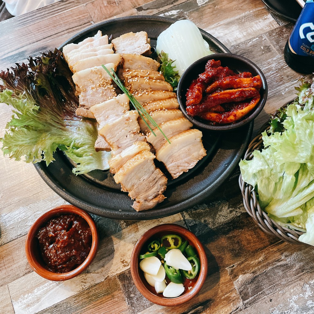 你吃過首爾名店【元祖奶奶菜包肉】嗎?雖然講白了就是滾水燉煮豬五花再切片,然後用萵苣/淺漬大白菜/辣蘿蔔/紫蘇葉/蒜片/包飯醬等…依個人喜好「用菜包肉」吃。