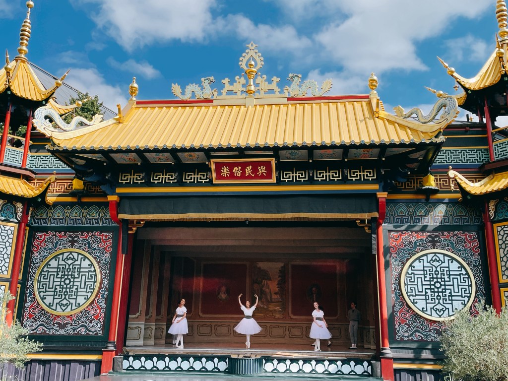 雖然坐在大太陽下看芭蕾有點辛苦(而且一點都不優雅),但中國風格戲棚尬芭蕾舞實在太新奇,讓我完全忘記北歐恐怖的曬斑日照後遺症,整場表演看好看滿。