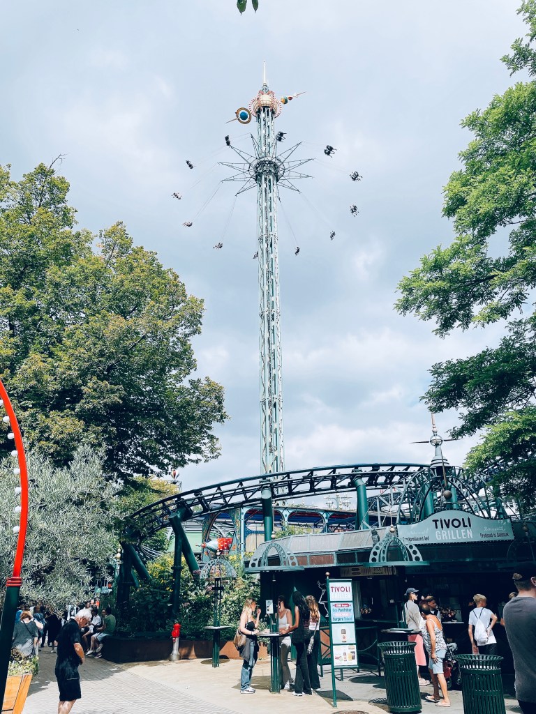 這種高空飛椅其實在歐洲夏天和冬天的移動式遊樂園十分常見,但都沒有【Tivoli蒂沃利樂園】的The Sky Flyers那麼高。站在地面看大家的腳在天上飛啊飛,默默也覺得自己的腳有點發軟…