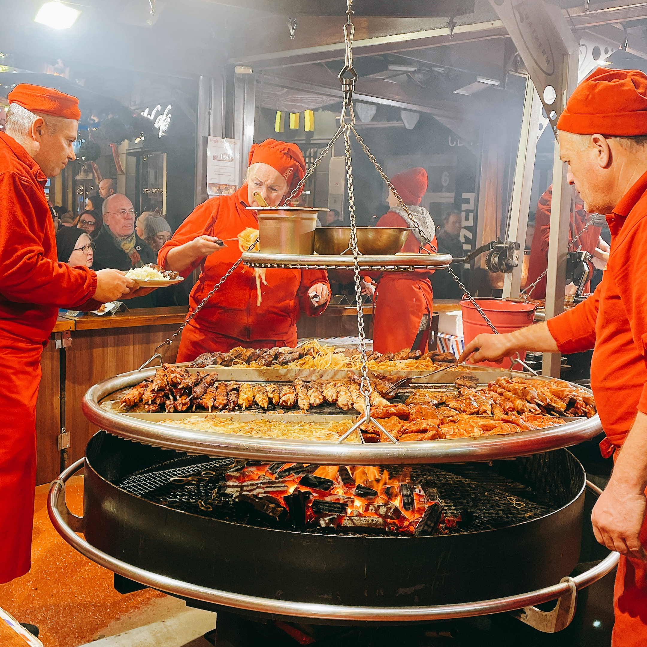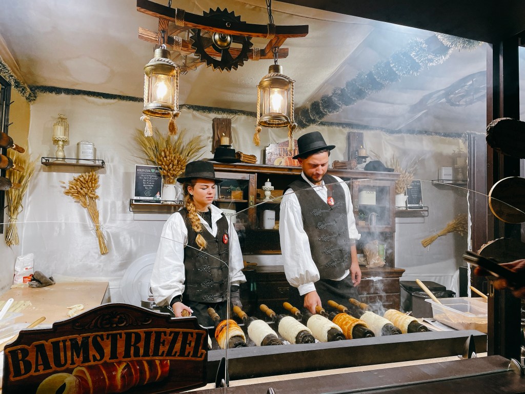 聖誕市集中常見的其他小吃攤位,例如:火焰薄餅、炸馬鈴薯餅、煙囪卷、烤栗子、砂糖炒杏仁、煙燻鮭魚等…就看各位當下心情和食慾,就和在台灣逛夜市一樣,選擇很多但偶爾會踩雷。