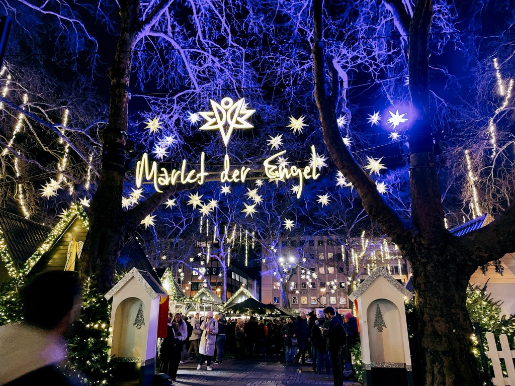位於Neumarkt廣場的天使市集(Markt der Engel)是我這次最喜歡也最推薦的科隆聖誕市集。主視覺是純白色調,攤販小木屋和樹上裝飾的星星都是天使白色。