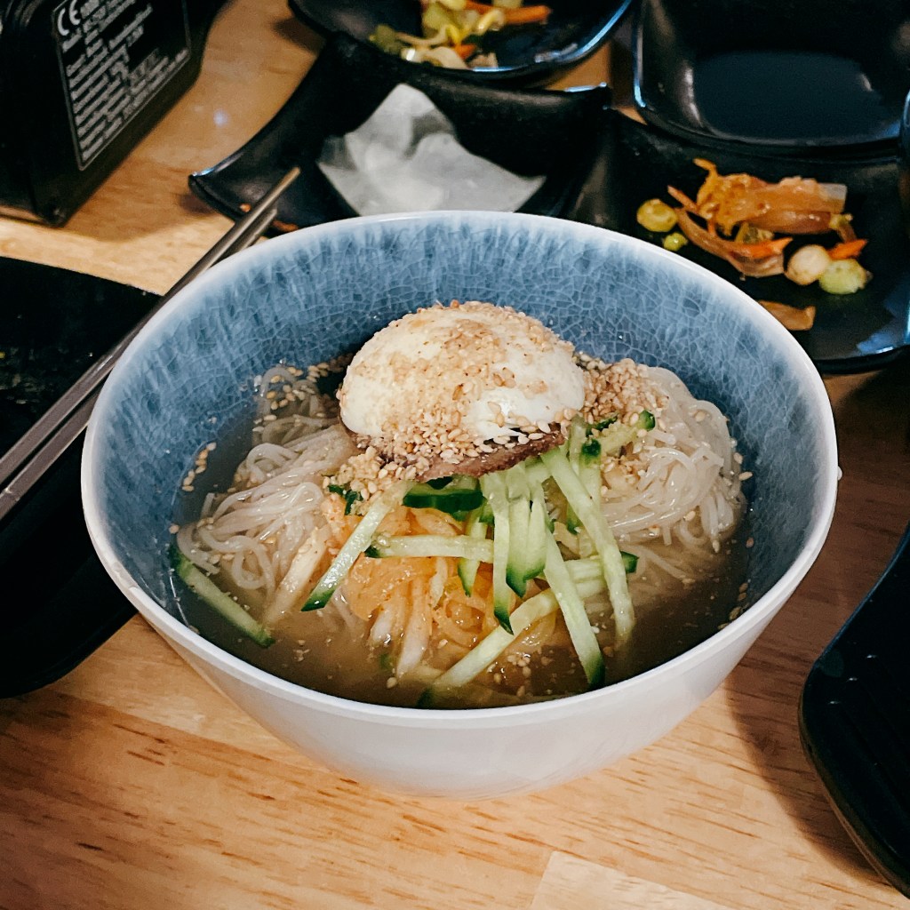 除了烤肉拼盤外,我們還追加了小份冷麵(€9)作為收尾。