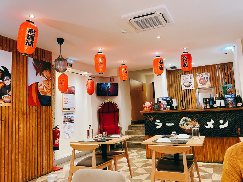 店內裝潢風格多元:有日本動漫(七龍珠+火影忍者)海報、電視正在播梁朝偉和張曼玉演的電影然後還有寫著「居酒屋」和「拉麵」的奇怪紅燈籠…菜單也是什麼都賣:避風塘炒蟹、煲湯、炒牛河、點心很合理,但竟然連珍珠奶茶和拉麵都搶著賣就有點太瘋狂。