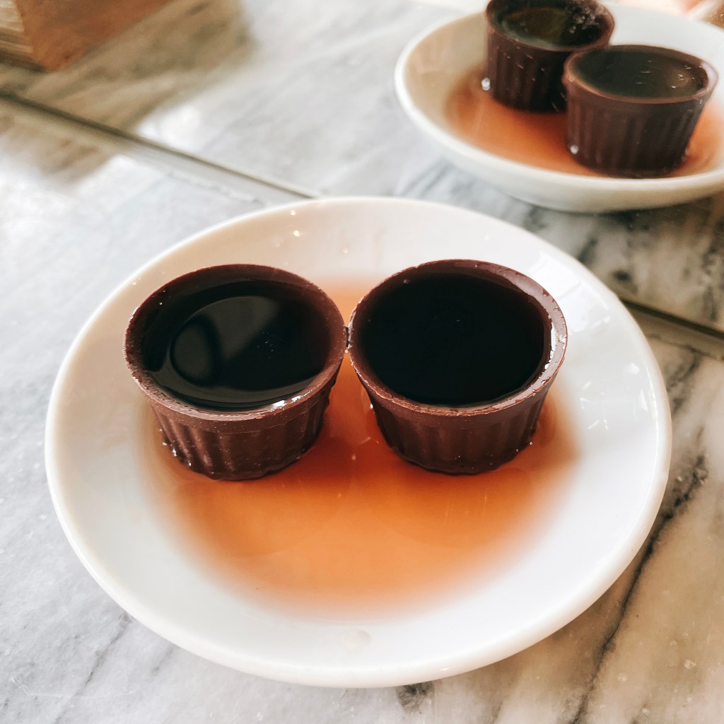一個巧克力shot酸櫻桃酒杯€1,95,甜滋滋的酸櫻桃酒很好入口、完全沒有烈酒特有的喉嚨燒灼感;喝完可拿回櫃檯讓店員幫你加第二杯,這次可配著巧克力吃,是大人專屬的微醺甜點。
