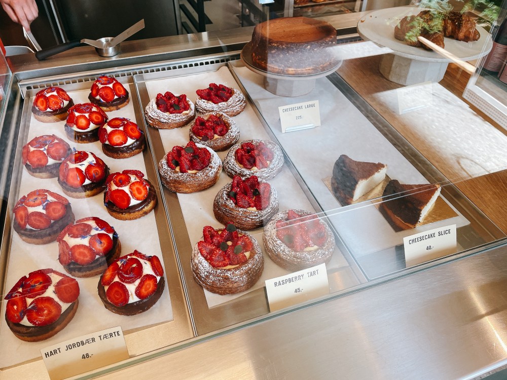 除了麵包,他們家的草莓塔(48 DKK)和起司蛋糕(40 DKK)也豪好吃啊!