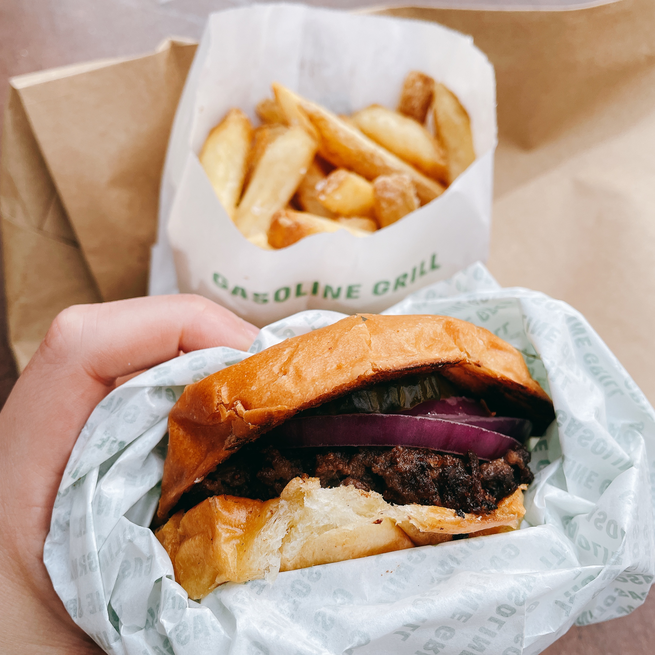 菲爾:「就跟熱狗的情況一樣,你一定得嚐嚐這個」這間開在加油站的漢堡店【Gasoline Grill】是一個去美國交換學生時期愛上美式漢堡的丹麥男孩Claus創立的,從農場到餐桌,無論麵包/肉類/蔬菜/馬鈴薯都是有機食材。