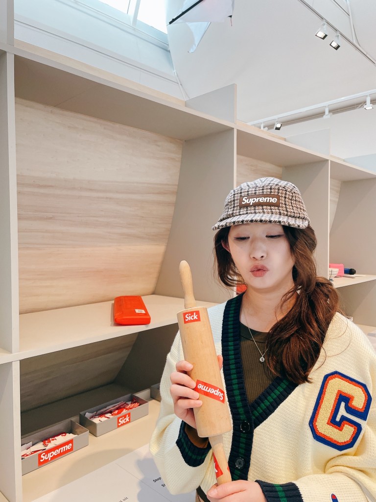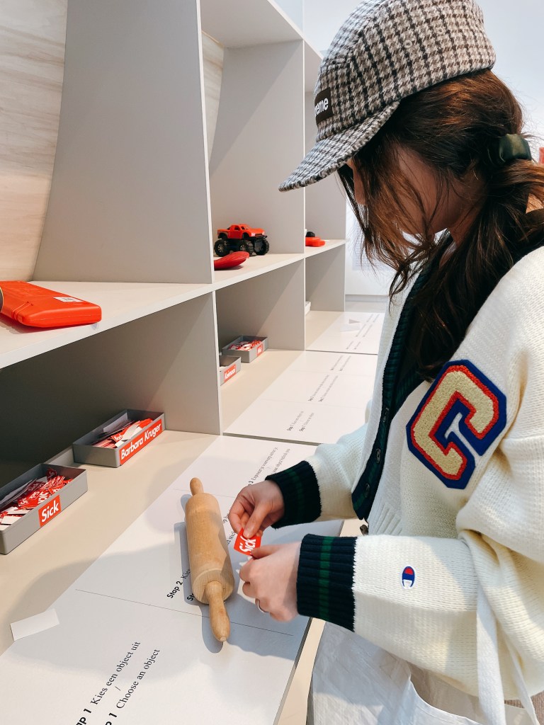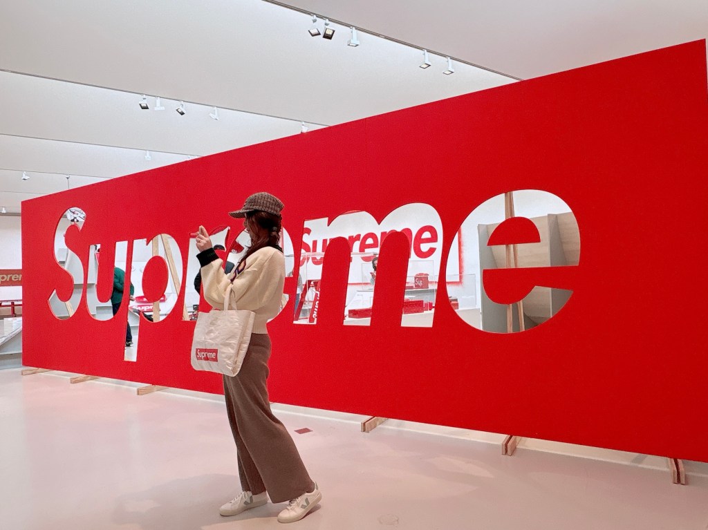 身為潮牌擁護者的另一半(aka我)當然也被「Supreme特展」這個有趣主題吸引。戴上帽子、拉上面罩,手提只送不賣的紅底白字Box logo Supreme購物袋,精心打扮一身潮牌朝聖去!