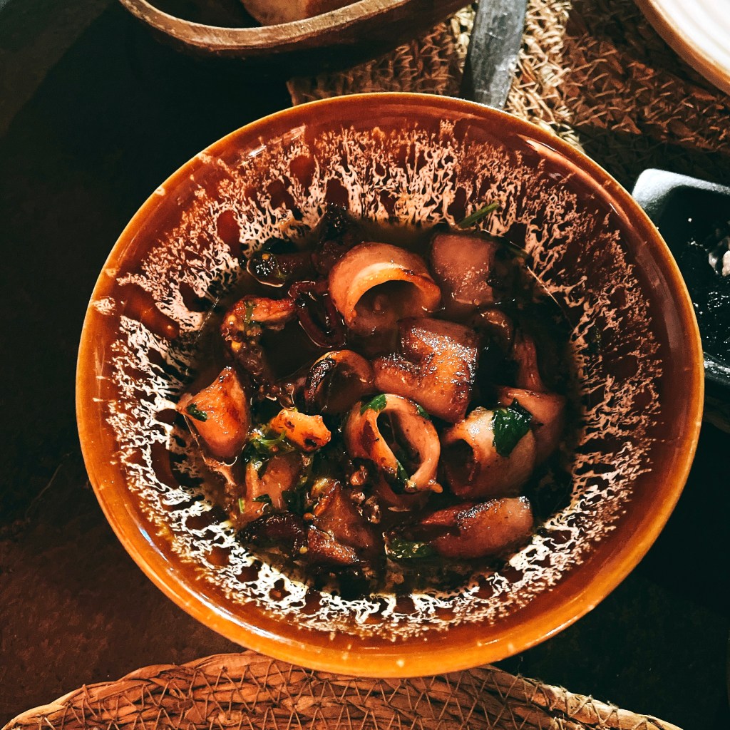 直火碳烤的章魚,兩人分享份量十足。章魚烤得非常完美,口感軟嫩又不失嚼勁