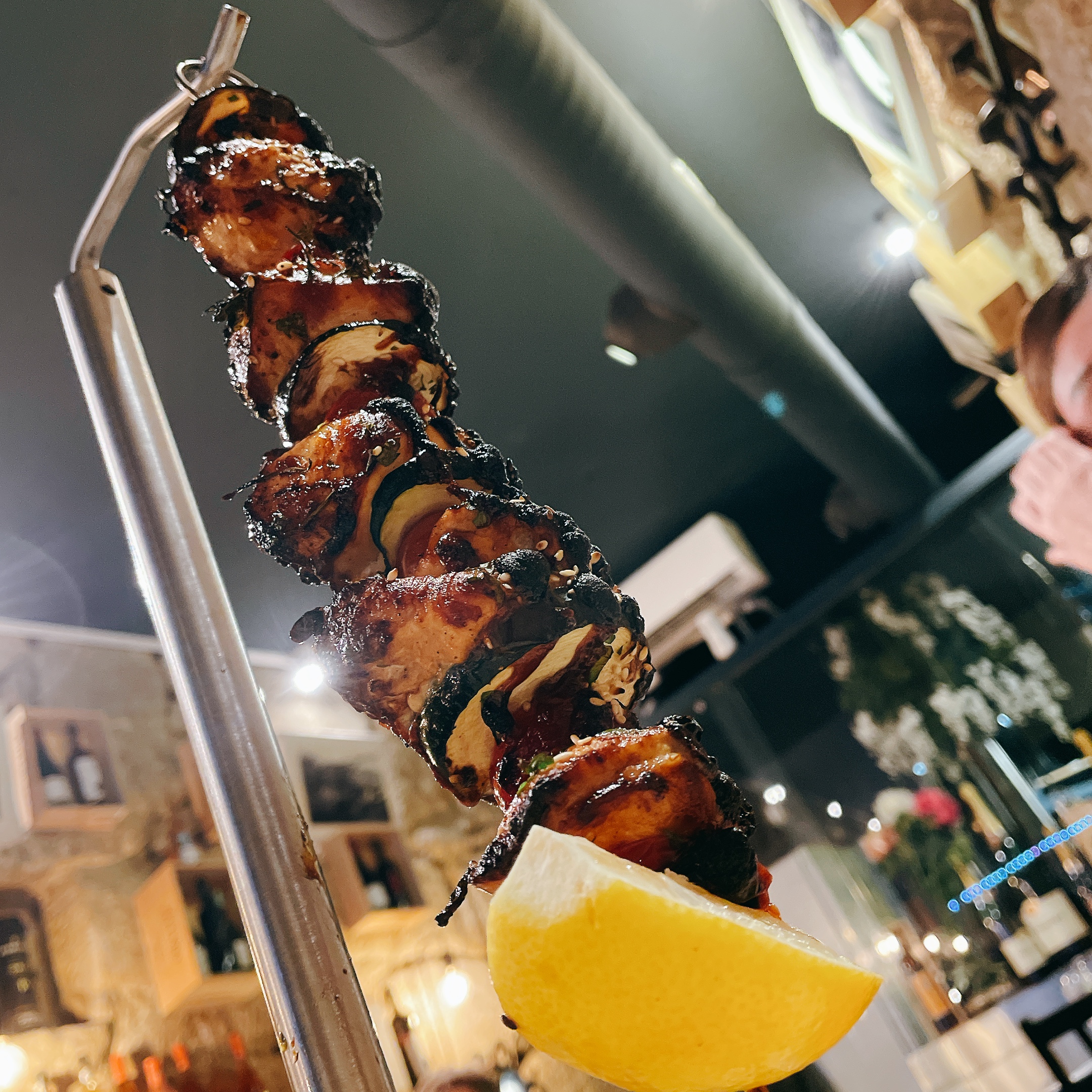 入座後發現每桌都點這個超浮誇雞肉烤串,腦波弱立刻跟著點、出乎意料好吃