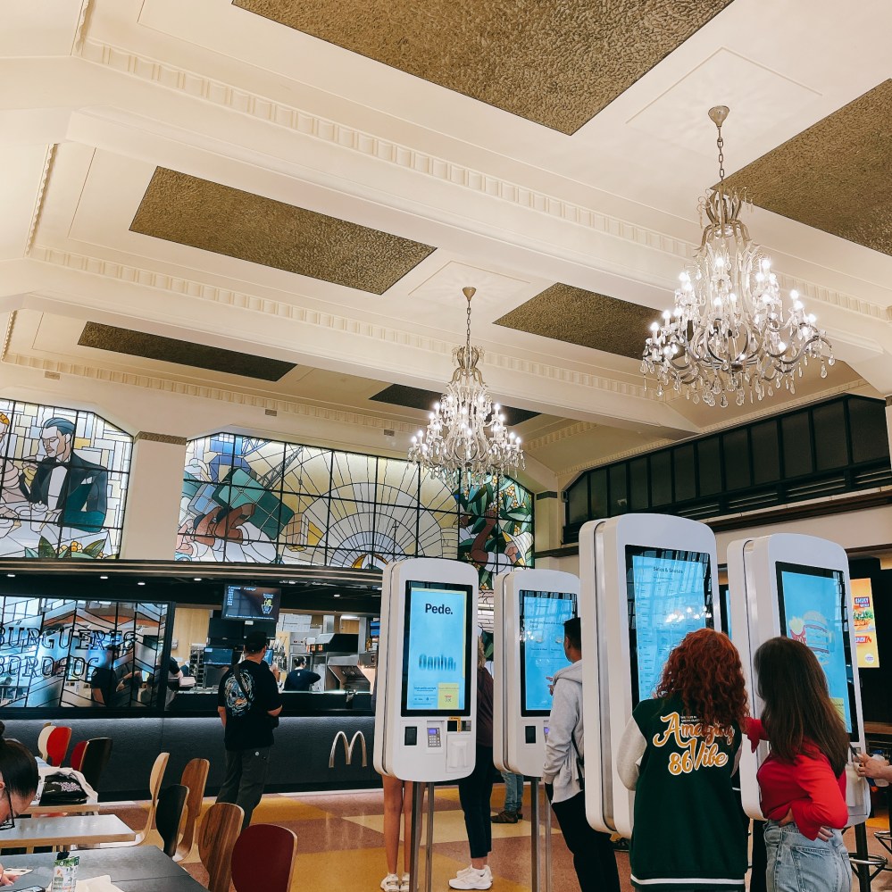 大廳駐紮許多點餐機大軍,古典的帝國麥當勞也能享受現代自動化點餐!