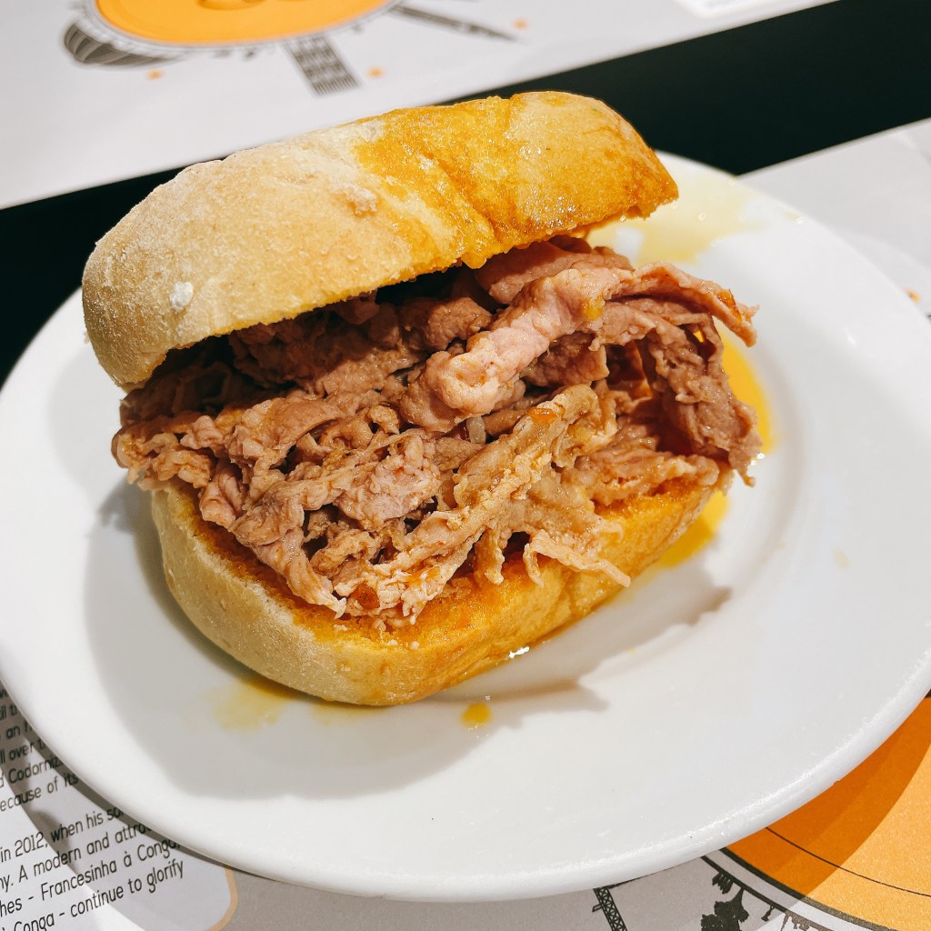 說到葡萄牙經典必吃,除了蛋塔,還有「胖死人不償命的」葡萄牙三明治(francesinha)、霹靂霹靂烤雞(peri-peri chicken)和這種又油又辣又鹹又臭的豬扒包(bifana)。
