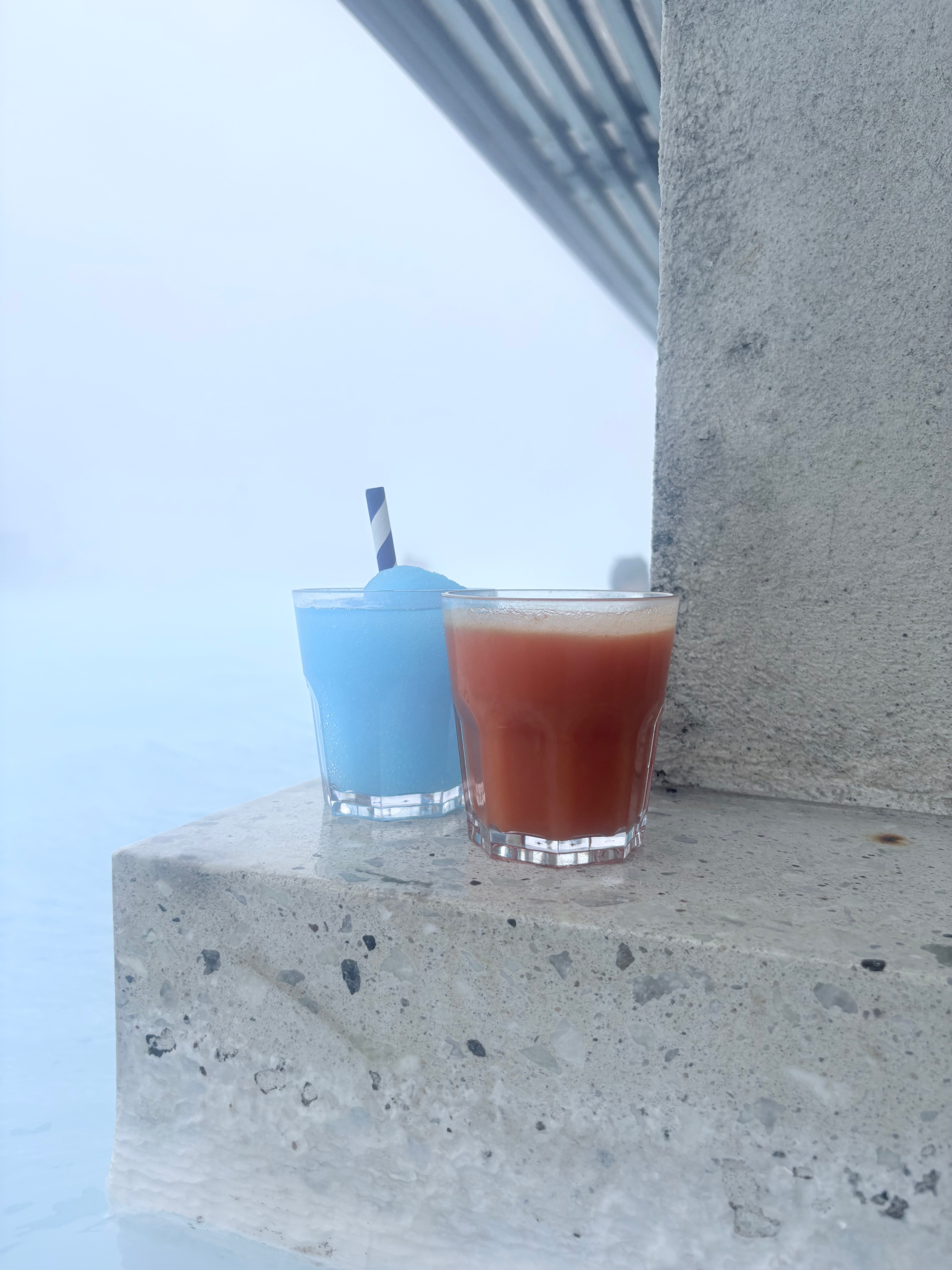(左圖)藍莓冰沙&番茄汁,(右圖)冰島綜合果汁&生啤酒