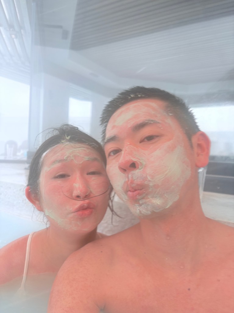 情侶、家庭、亦或三五好友,各自找到舒適的角落,塗抹厚厚一層火山泥面膜、嬉戲、聊天、拍一百張網美照上傳打卡,娛樂性質滿分。
