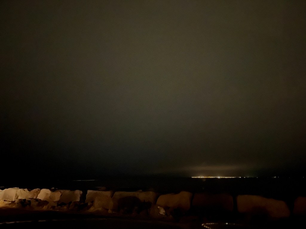 最後幾天晚上終於沒下雨,雖然天氣預報上雲層看起來到清晨前都超厚、但半獸人先生堅持要體驗一下「夜衝」極光的青春,所以我們還是硬去了雷克雅維克市區開車10分鐘可到的極光觀賞熱點。