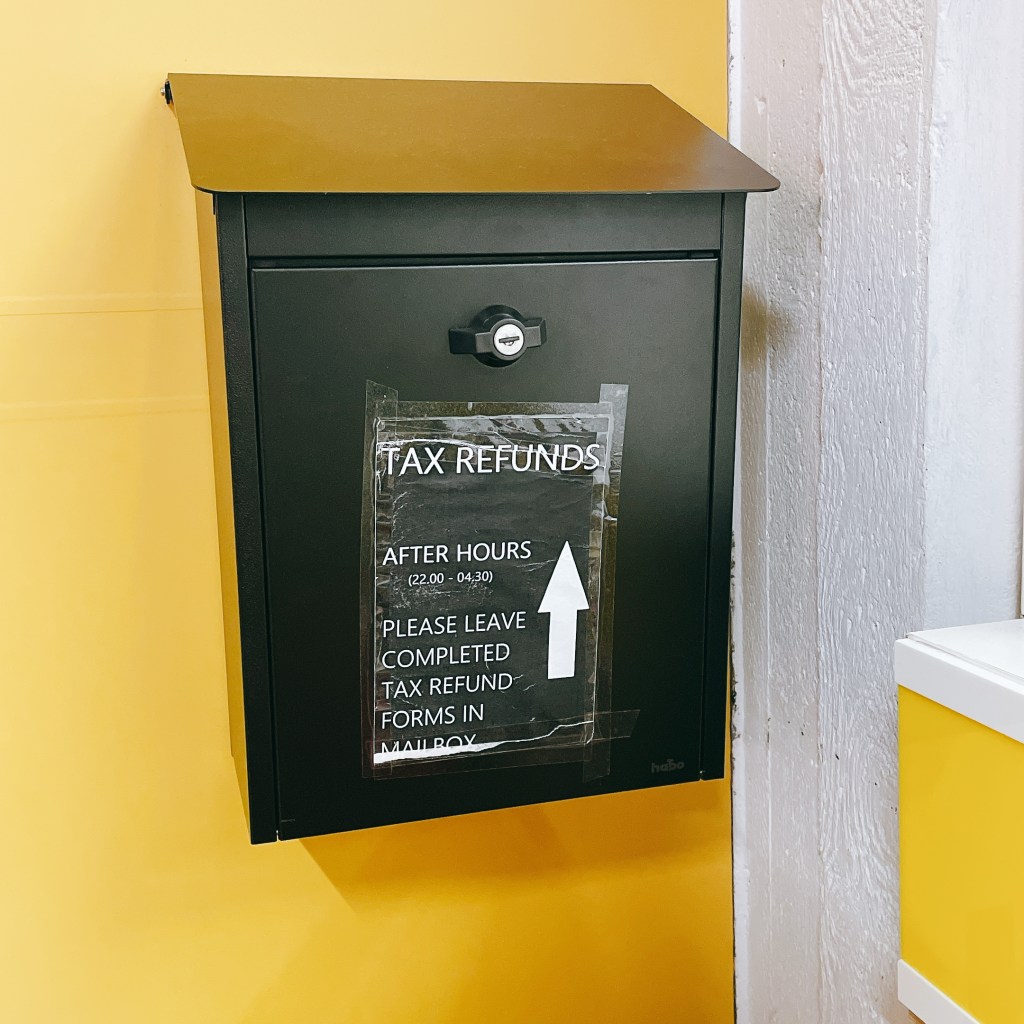 如果離境時間退稅驗證櫃台還沒有營業,可以前往旁邊的換匯櫃台辦理,再把退稅單和退稅申請書投遞於櫃檯旁的小信箱。
