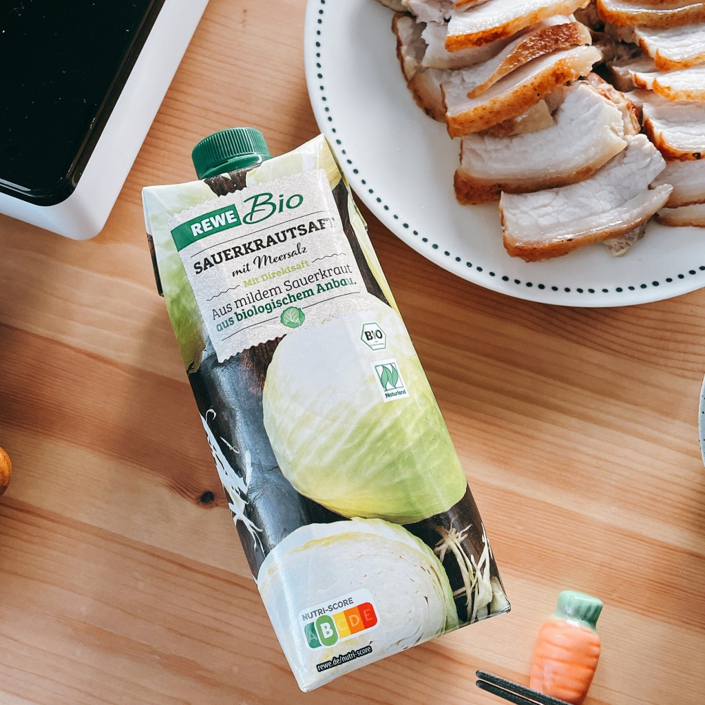 這種德國酸菜汁超神奇,德國人好像喜歡當健康蔬果汁空腹喝;但好友推薦我拿來煮【酸菜白肉鍋】增加天然酸味,意外非常對味,堪稱一絕,每次去德國都會囤幾瓶帶回荷蘭。