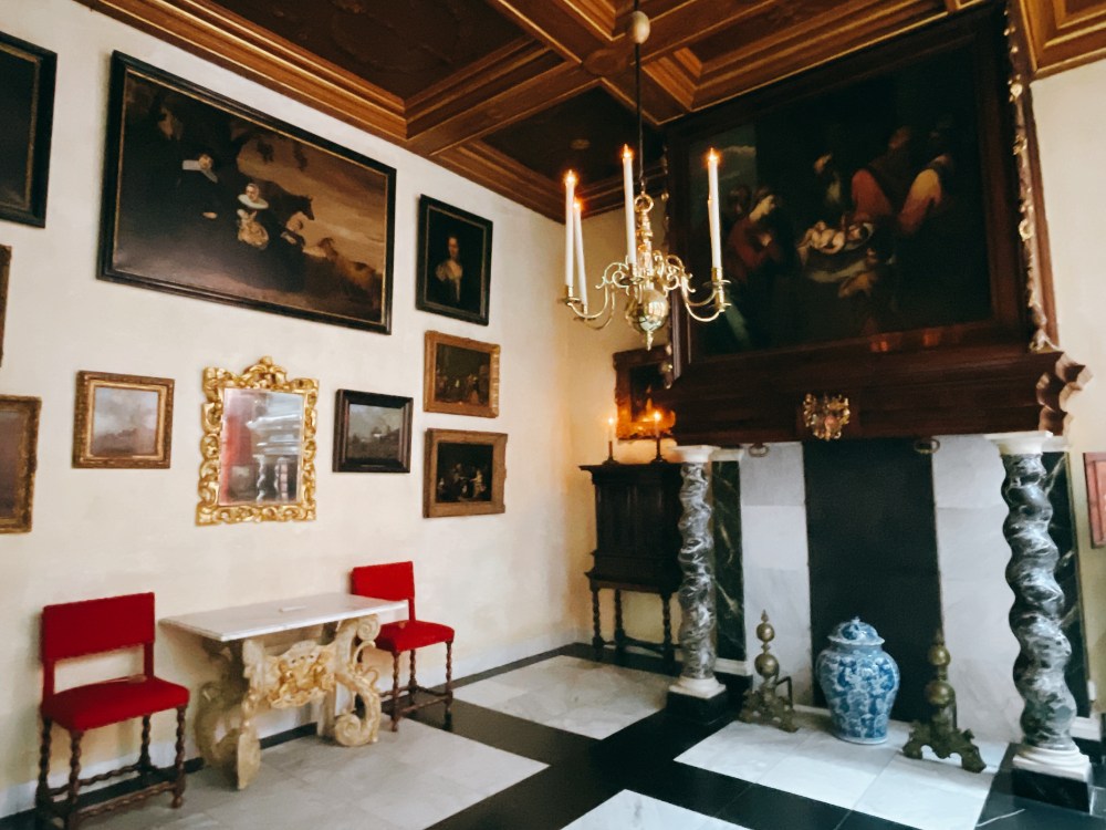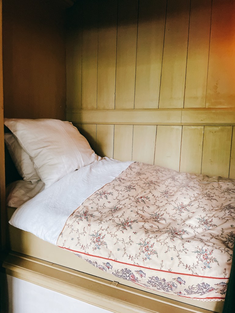 【閣樓上的吾教堂主教堂】參觀路線主要是富商Jan Hartman住家修復後的樣子。貼著大理石壁紙的木頭門廊、會客室、還有典型17世紀的荷蘭「坐舖」床,荷蘭黃金時代中產階級生活樣貌可略見一斑。