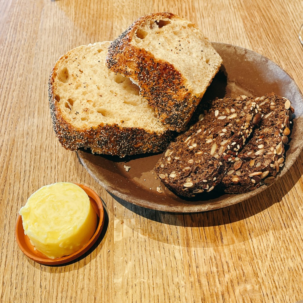 通常我不太點餐前麵包,但【Barr】的罌粟籽麵包看起來實在太美味了,抹上厚厚的鹹奶油實在太療癒。至於黑麥麵包就是拿來墊開放三明治(smorboord)的那種,非常樸實也非常丹麥。